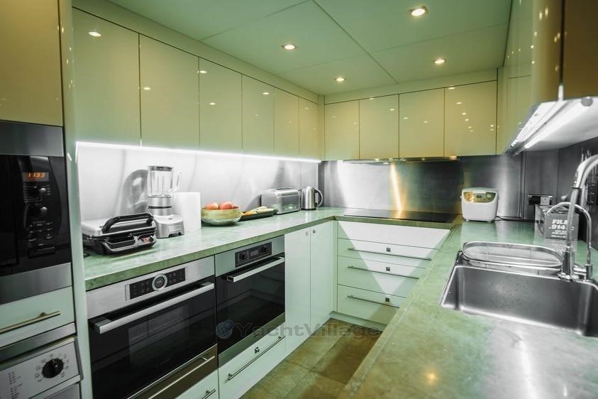 Her top speed is 27 knots while the cruising speed is 23 knots - driven by twin screw MTU 16V 4000 M93L 4680 HP (9360 HP in total) diesel engines which have a mere 1900 hours use - she was not a charter yacht.