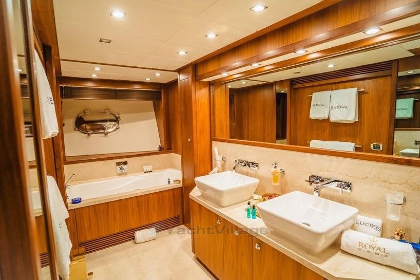 She is unique in being built with 7 en-suited staterooms (1 enormous main deck master / 2 double VIP / 4 twin) which can accommodate up to 14 guests, with 7 crew members waiting on their every need. Timeless styling, beautiful furnishings and sumptuous seating feature throughout to create an elegant and comfortable atmosphere.