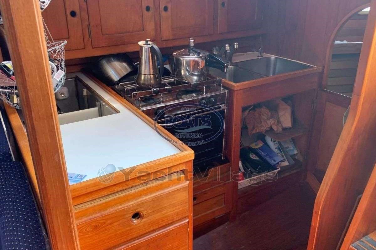 1985 PUZZLE MARIN PUZZLE 36, Conçu par l'architecte Jörgen Särnå et construit par le chantier Puzzle Marin (fondé par d'anciens artisans de Hallberg-Rassy), ce Puzzle 36 de 1985 est un voilier d'exception, intégralement fiabilisé après une récente traversée de 40 jours depuis la Suède.Avec son pont en teck impeccable, ses aménagements intérieurs en bois massif et son armement hauturier complet, ce bateau est prêt à reprendre la mer sans délai.Caractéristiques principalesLongueur : 10,93 mLargeur : 3,50 mTirant d'eau : 1,90 mDéplacement : 5 080 kg (ballast en plomb : 2 000 kg)Hauteur sous barrot : > 1,90 m (confort optimal)Moteur : Yanmar 3GM30F (27 CV, saildrive) - Remotorisé en 1998Énergie autonome : Panneaux solaires, batteries de service, groupe froid, chauffage Wallas, eau chaudeSécurité hauturière : Équipement complet pour navigation longue distanceAménagements intérieurs - Luxe et fonctionnalitéIntérieur en teck massif, finitions haut de gamme façon Hallberg-RassySaloon spacieux avec banquettes et table convertibleCabine avant très large, cabine arrière avec couchage doubleToilettes avec accès depuis le carréCuisine équipée : réchaud à gaz, four, évier, frigoNombreux rangements optimisés pour la vie à bordÉquipements et voilure - Prêt pour la grande croisièreÉlectronique hauturière récente :Traceur & AIS GarminInstrumentation Raymarine ST60Pilote automatique Raymarine (sur barre à roue)VHF fixeVoilure performante et bien entretenue :Grand-voile Full Batten laminéeGénoisFoc autovireurGennaker sur enrouleur (idéal pour les petits vents)Équipements supplémentaires :Panneaux solaires (autonomie énergétique)Annexe semi-rigide 270 cm (avec moteur si disponible)Pont en teck en excellent état, winches et accastillage révisésSystème de chauffage Wallas (confort par tous les temps)Pourquoi ce Puzzle 36 est-il exceptionnel ? Voilier rapide et stable, même par mauvais temps Intérieur luxueux et fonctionnel, idéal pour la vie à bord Moteur fiable (Yanmar 3GM30F) et électronique moderne Jeu de voiles complet et performant Bateau intégralement fiabilisé après une croisière de 40 jours depuis la Suède Prêt à naviguer sans travaux majeursVisites sur rendez-vousIdéal pour les amateurs de voiliers suédois bien construits, alliant performance, confort et sécurité !Un voilier de voyage assez proche dans sa conception des modèles NAJAD, HALLBERG RASSY, MOODY, WESTERLY, WAUQUIEZ, ... Le chantier suédois Puzzle Marin a été crée dans les années 1980 par des anciens charpentier du chantier Hallberg Rassy. On retrouve de large similitude dans le travail et l'attention apportée aux aménagements, boiseries intérieures et pont en teck.PUZZLE 36 - Ce quillard de 1985 pensé par l'architecte Jörgen Särnå et construit par le chantier naval Suedois Puzzle Marin est très bien entretenu et équipé. Sa conception et ses dimensions allient performance à la voile, confort à bord et autonomie. En effet, d'une longueur de 10.93 m avec une largeur de 3.5 m et une hauteur sous barrot confortable > 1,9m, ce voilier n'a rien à envier à l'habitabilité de bateaux plus récentsPrêt à reprendre la mer - À saisir sans tarder !