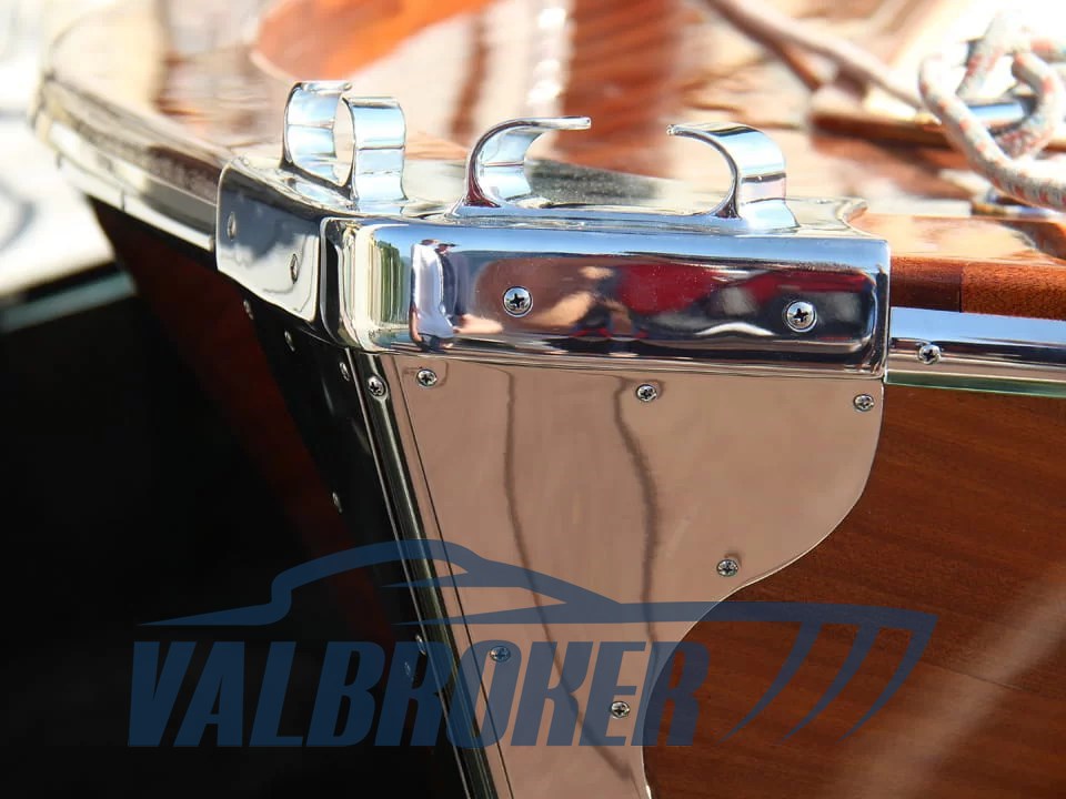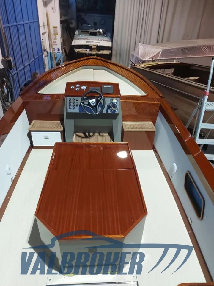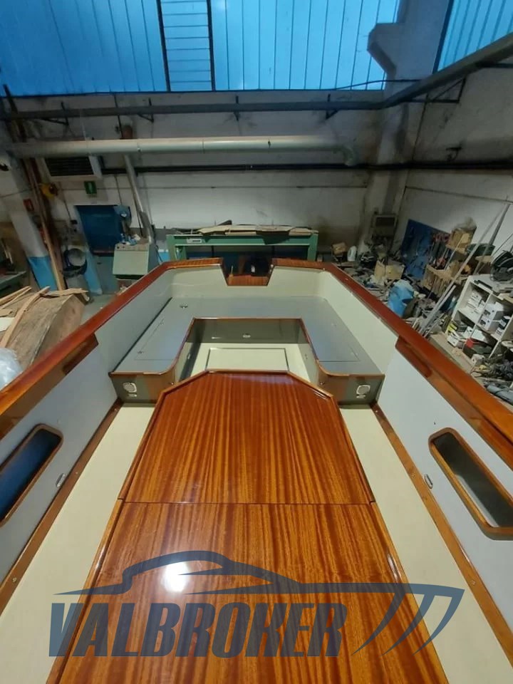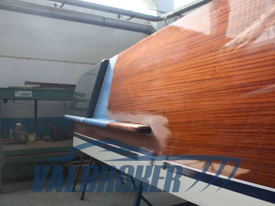 Box doccia poppa, 6 Parabordi,2 estintori,1 Mezzo marinaio,Telo copribarca, Linea di scarico con silenziatore e tubazioni omologate RINA, Impianto adduzione gasolio con prefiltro decantatore, Strumentazione motore (contagiri, pressione olio, temperatura acqua, contaore), Comando motore ed invertitore monoleva, Sedi portabottiglie, Bordo paracolpi in cima trecciata sui fianchi, Maniglie tientibene sui due lati del prendisole, Galloccia di ormeggio a prua e a poppa, Supporto per asta bandiera, asta in teak e bandiera Alloggiamento per ancora e linea di ancoraggio a scomparsa in coperta a prua