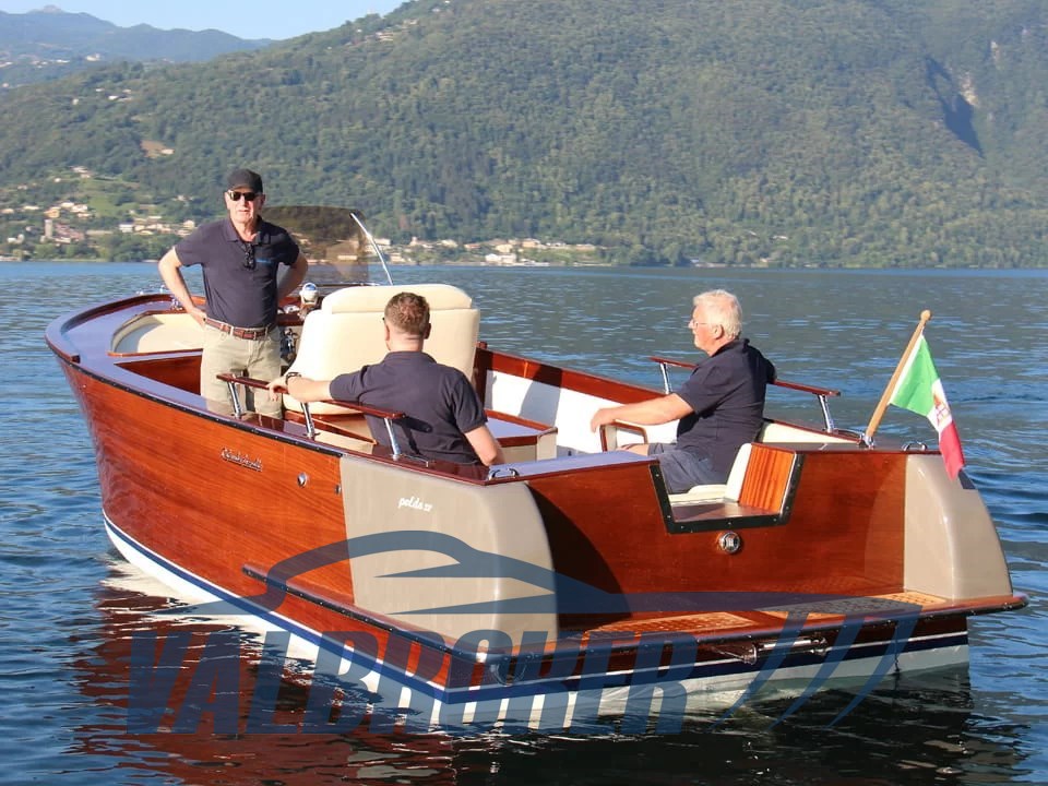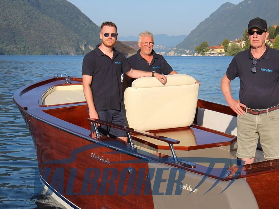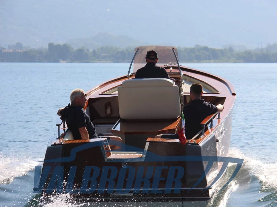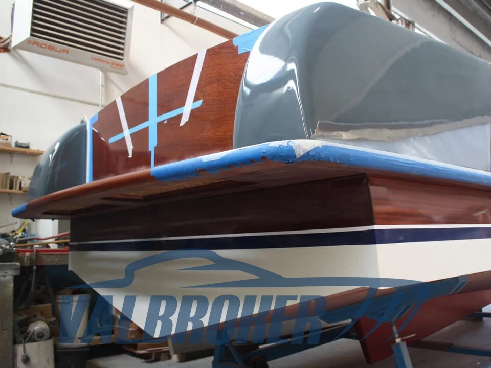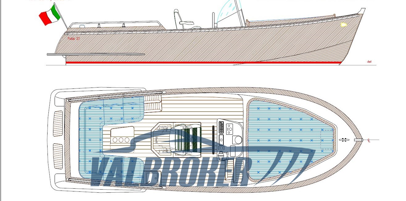 Box doccia poppa, 6 Parabordi,2 estintori,1 Mezzo marinaio,Telo copribarca, Linea di scarico con silenziatore e tubazioni omologate RINA, Impianto adduzione gasolio con prefiltro decantatore, Strumentazione motore (contagiri, pressione olio, temperatura acqua, contaore), Comando motore ed invertitore monoleva, Sedi portabottiglie, Bordo paracolpi in cima trecciata sui fianchi, Maniglie tientibene sui due lati del prendisole, Galloccia di ormeggio a prua e a poppa, Supporto per asta bandiera, asta in teak e bandiera Alloggiamento per ancora e linea di ancoraggio a scomparsa in coperta a prua