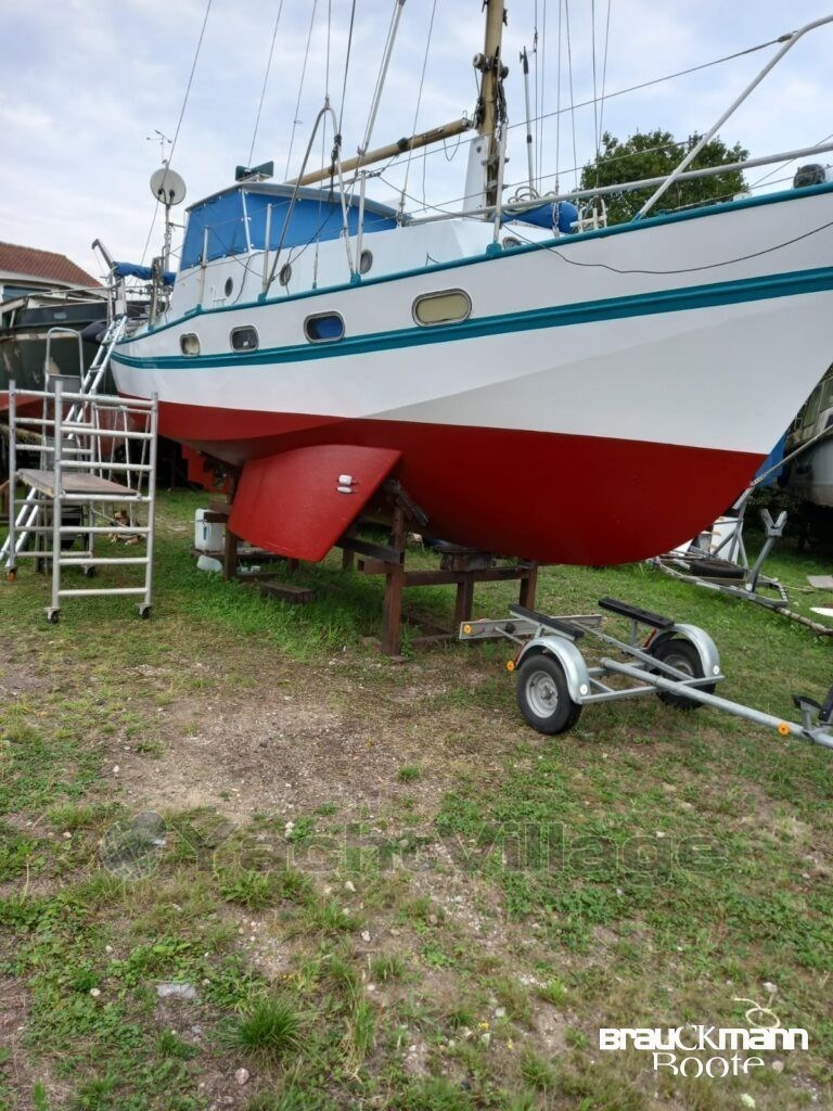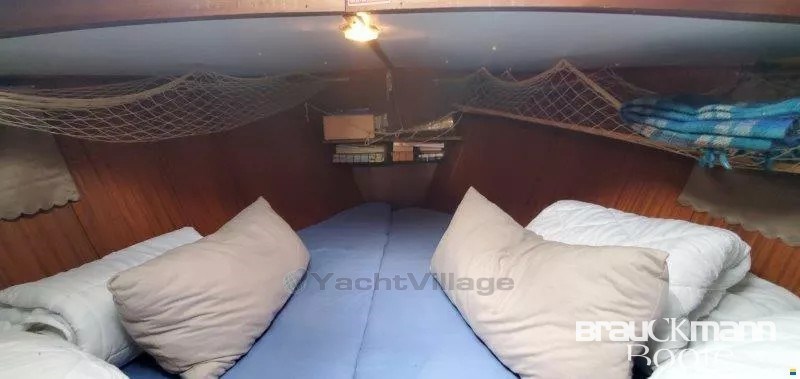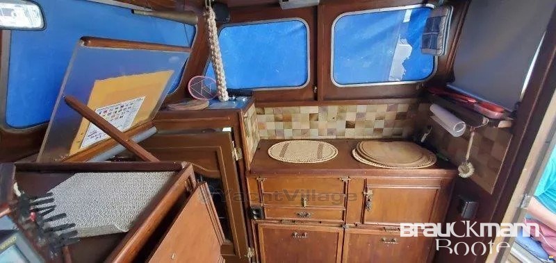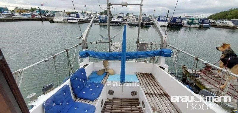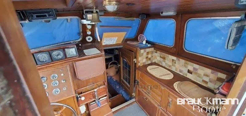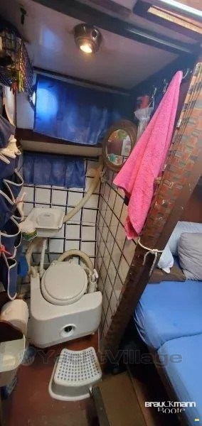 scafo in acciaio sano con misura di 3,8 mm. Nuova verniciatura. Area salotto a forma di U, di fronte a una panca larga anch'essa per dormire, davanti ai due letti, tutta la rivestimenteria è nuova, in beige blu. Bagno con lavanderia, serbatoio d'acqua nera, non ancora utilizzato, il foc di avvolgimento è nuovo. Anche la vernice subacquea blu è stata rifatta 4 mesi fa. La KITCHEN è nella timoneria. L'albero è montato di nuovo, il cambio è stato fornito una volta in cambio. 51 CV Mitsubishi. Dinghy, nave pronta per le vacanze con Pöt e Pan.