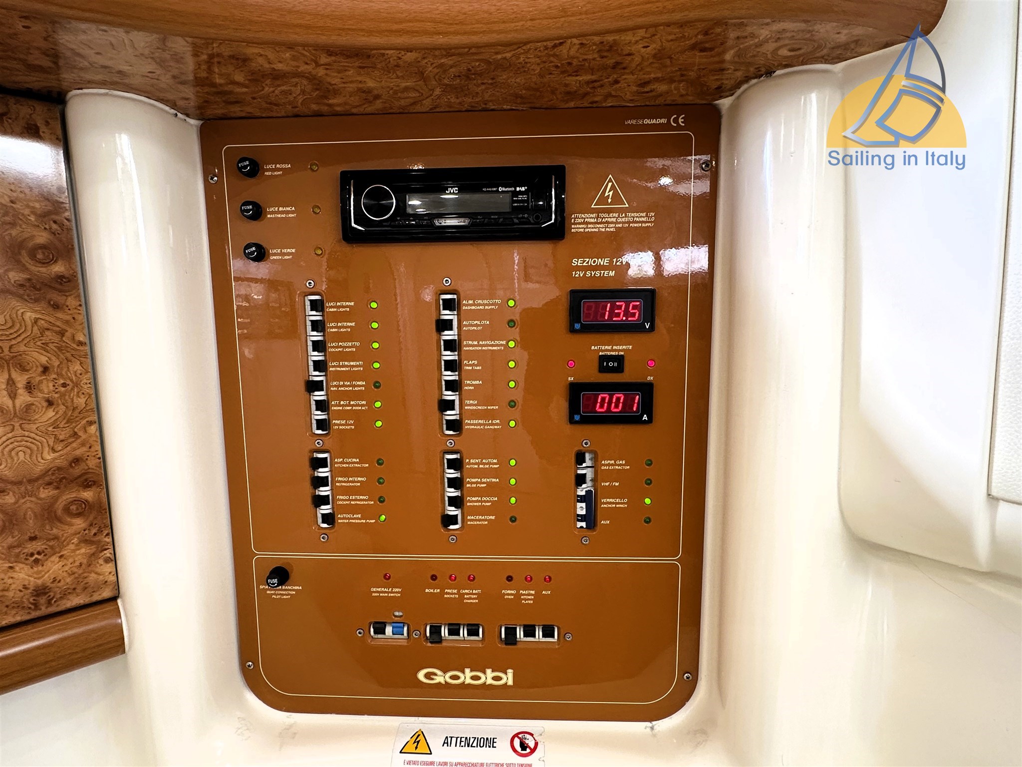 Generatore Yamaha portatile 2 kW ; Impianto elettrico 12V / 220V ; Serbatoi: 700 L carburante | 240 L acqua ; Boiler (220V + scambiatore motori) ; Impianto acque nere ; WC elettrico ; Il boiler funziona sia a 220 volt che con liquido di raffreddamento motori.