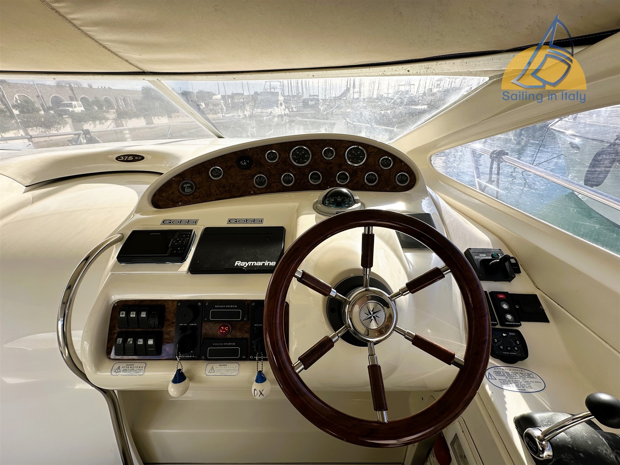 GPS Plotter Raymarine Axiom 9” ; Secondo ecoscandaglio Raymarine Dragonfly a colori ; Pilota automatico ; VHF (2021) ; Comandi motori elettronici ; Bussola, log, contamiglia, monitor consumi, strumentazione motori completa