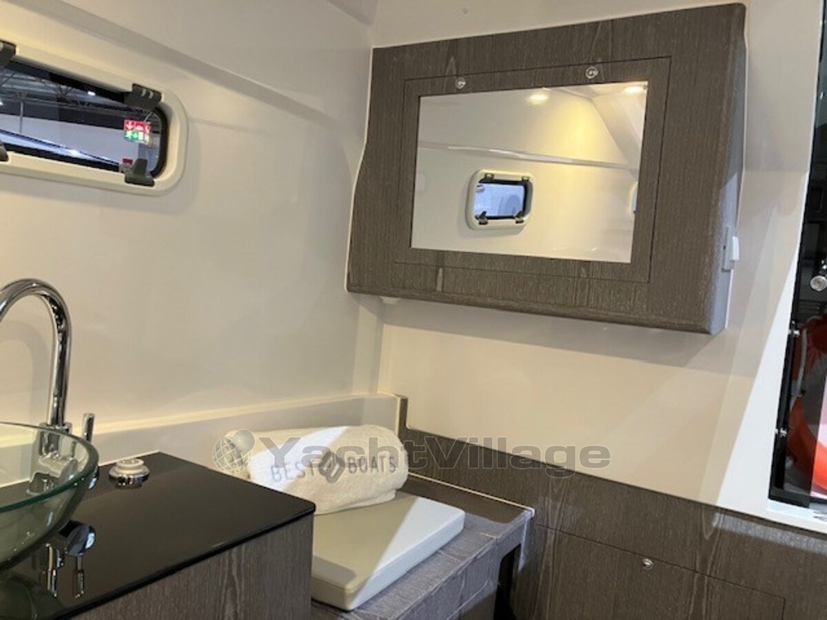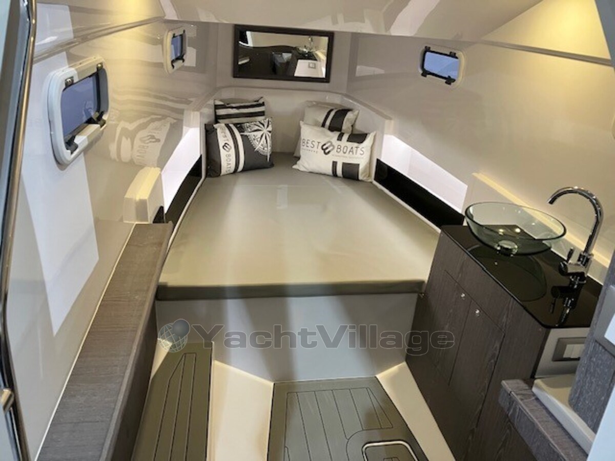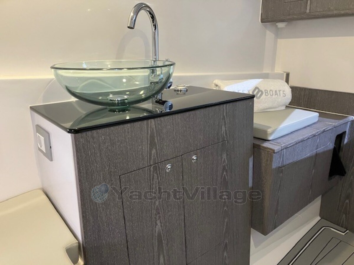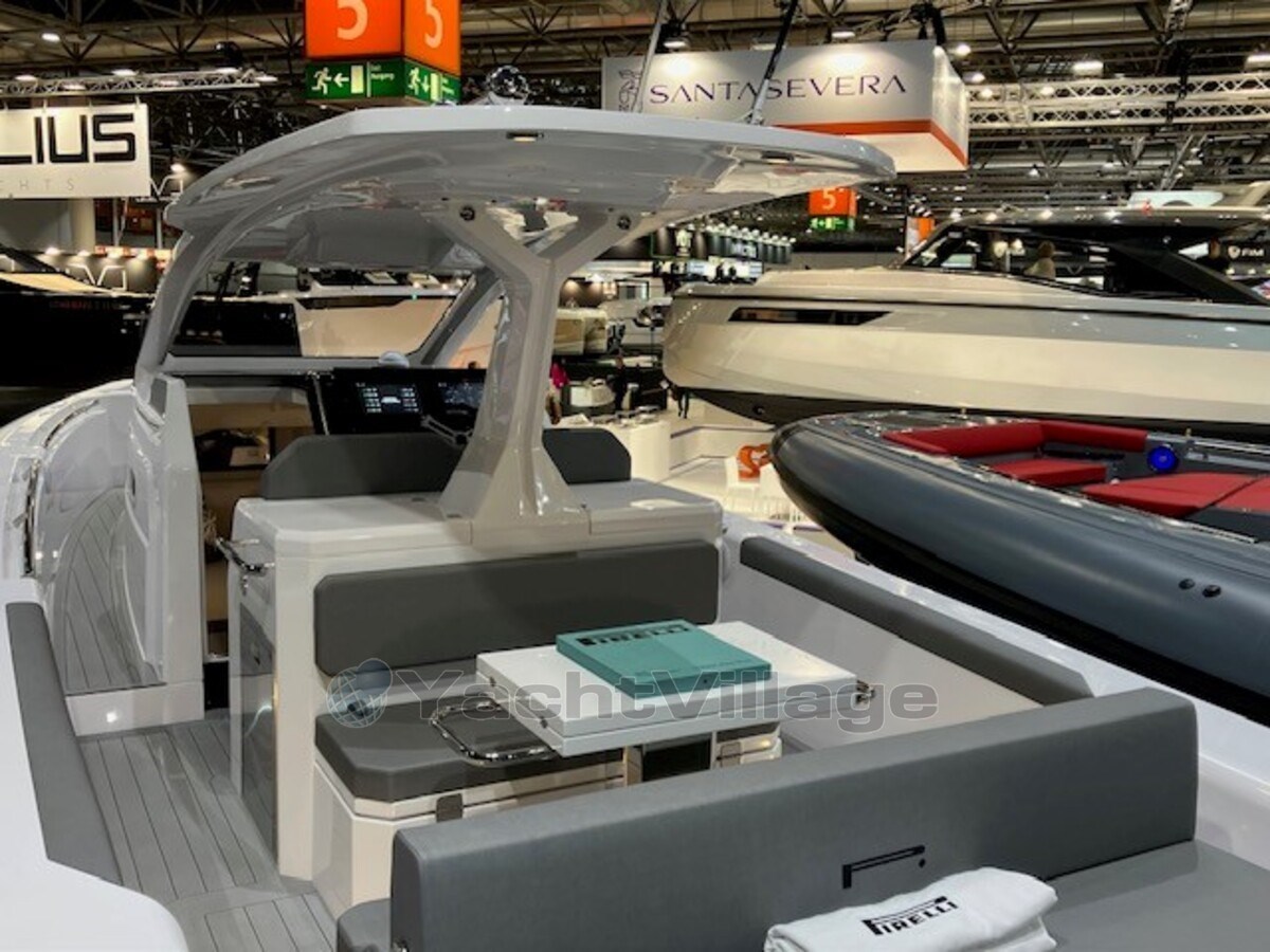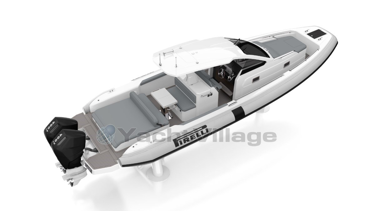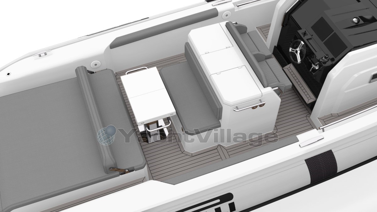 Piattaforma (De Pirelli P35 heeft een deck belegd met Flexiteak, met een grijze, high-grip afwerking en zwarte voegen. Dit zorgt voor een slipvaste, duurzame en esthetisch aantrekkelijke vloer die zowel comfort als veiligheid biedt tijdens het varen)