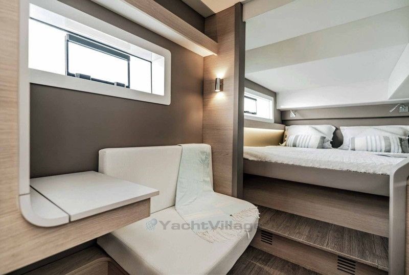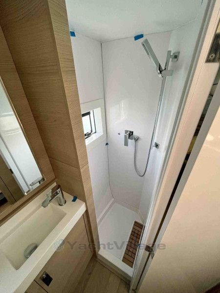 Cabine di poppa, Cabina di prua, Cabina proprietario, Salone, Cabina di pilotaggio in tek, WC elettrico + Lavabo + Doccia