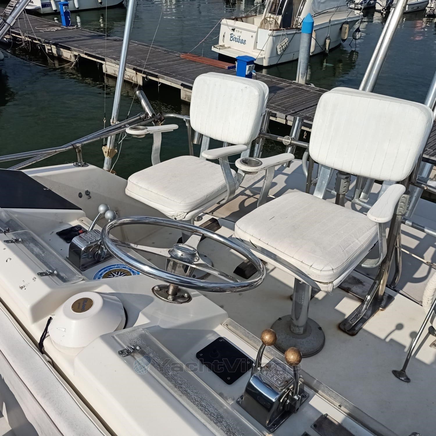 predisposta generatore; divergenti da installare; sedia da combattimento; 2024 NUOVO : 2 batterie da 270, impianto elettrico, luci a led, revisione verricello, portata carena a zero ; 2025 : motore destro sbarcato e revisionato ad ore zero, sinistro periziato, installato pannello solare185 W. cuscino letto prua ;