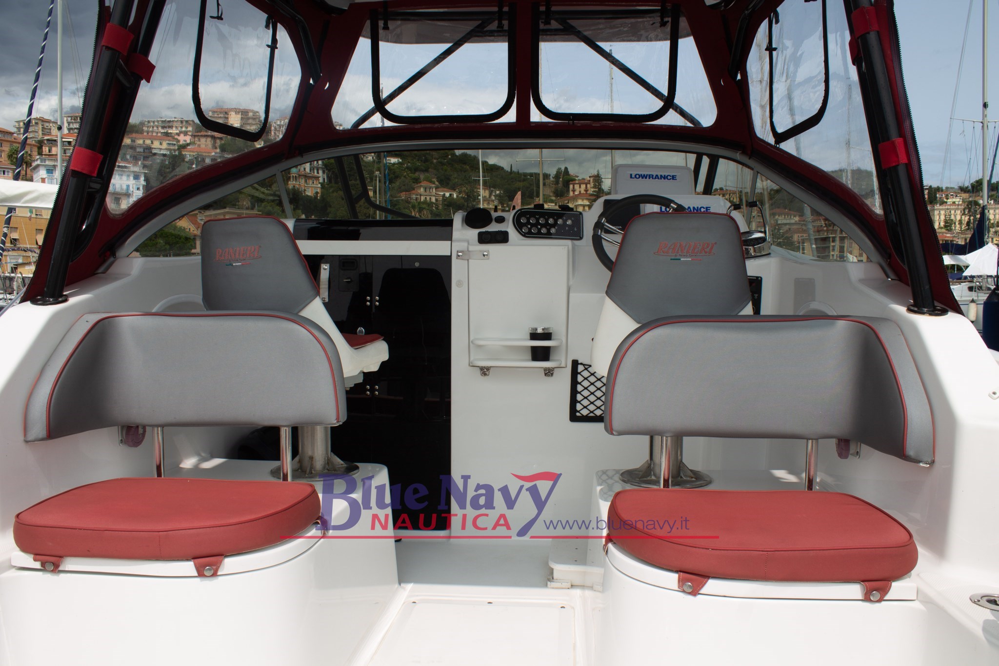Equipaggiamento di serie: Pompa sentina, Luci di navigazione, Timoneria Idraulica, bitte ormeggio a scomparsa, Scaletta di risalita, scafo bianco, tappezzeria Tappezzeria esterna, Serbatoio Carburante 255lt, Blower, WC, frigorifero,Vasca del vivo, Vasca del pescato, Impianto doccia, Lavello Esterno, Doccia con presa a mare, Tappezzeria Cabina, Stacca batteria, 2 oblò, Tavolino a scomparsa, 2 porta bicchieri, 2 sedili confort.
