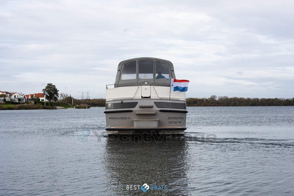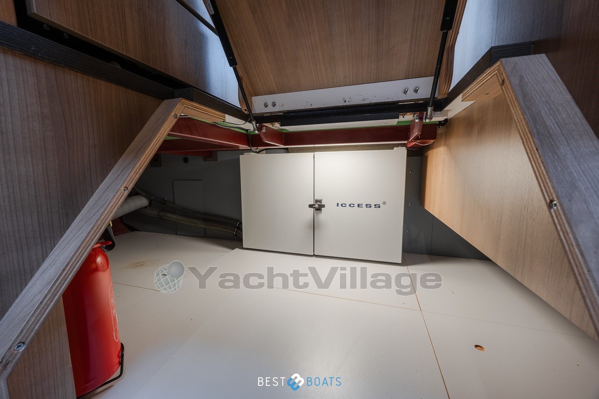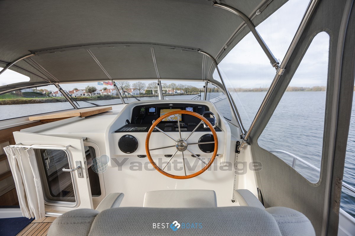 Sotto il cofano si trova il affidabile motore diesel Volvo Penta D3-110, che garantisce velocità silenziosa, efficiente e potente. Grazie ai propulsori di prua e poppa Side Power (24V, 8,5 hp), puoi muoverti senza sforzo in qualsiasi porto.