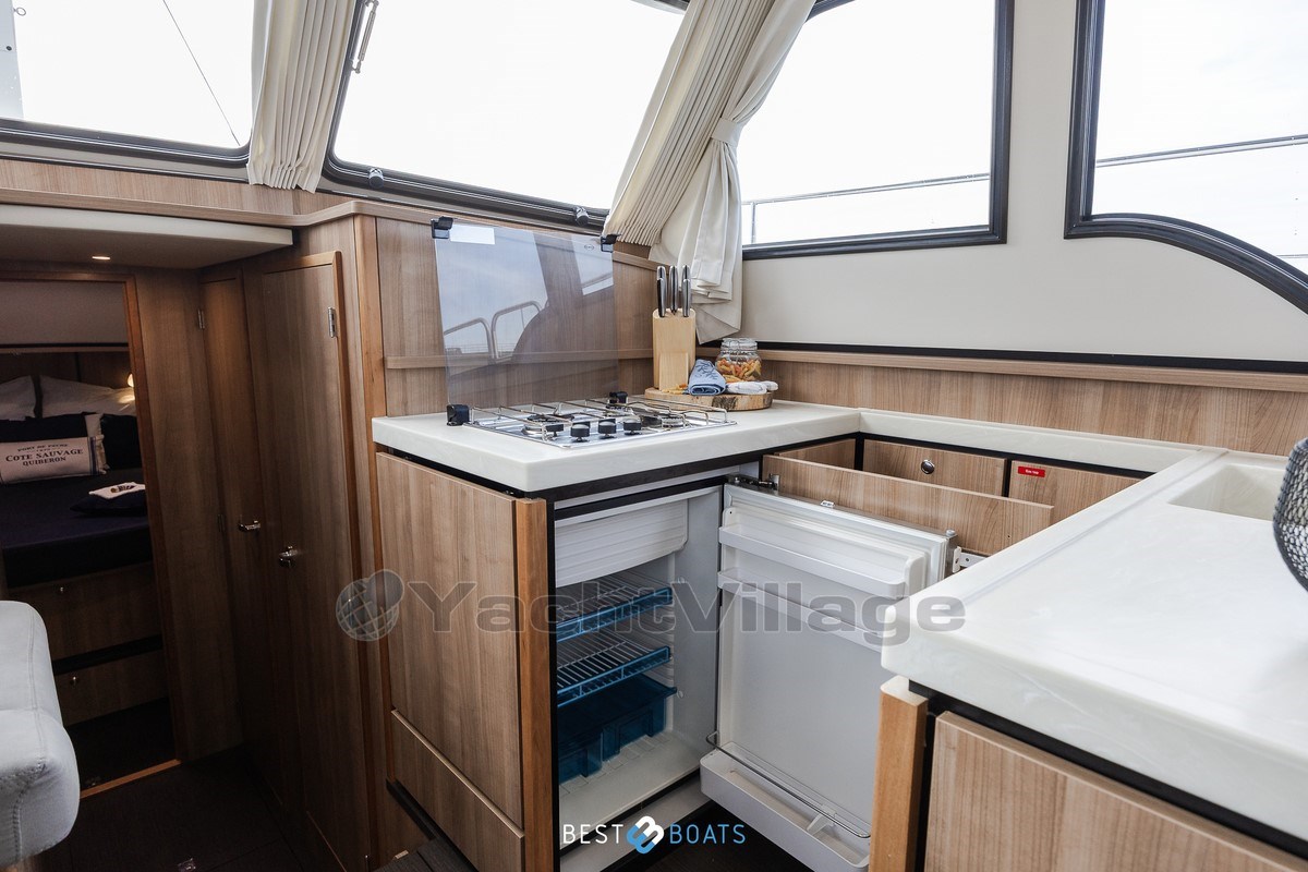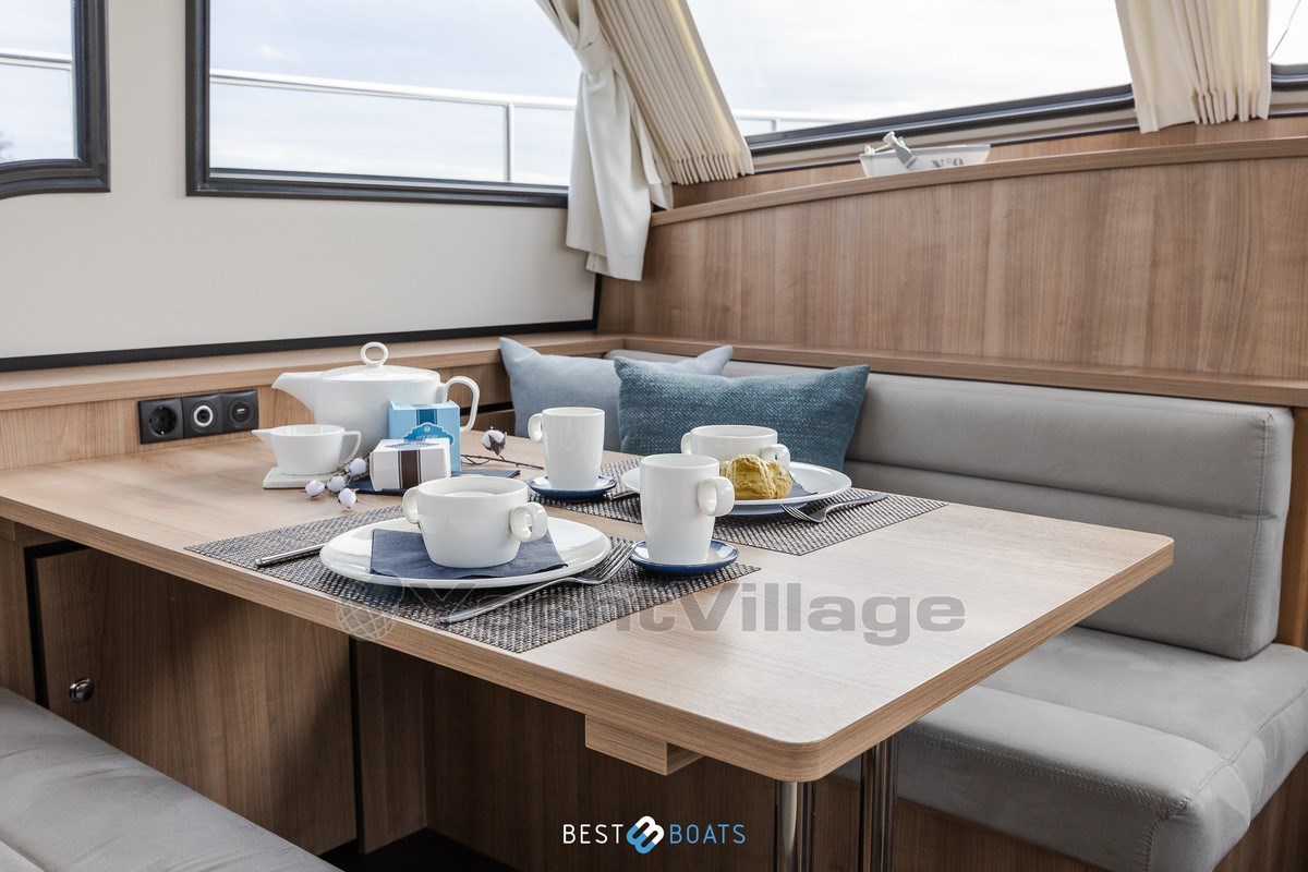 Il salone luminoso e accogliente è il cuore della nave. Grazie alle grandi finestre, puoi godere di molta luce naturale e di una splendida vista tutto intorno. La cambusa completamente attrezzata è dotata di attrezzature moderne e, con una TV e una macchina da caffè Nespresso, ti sentirai a casa a bordo.