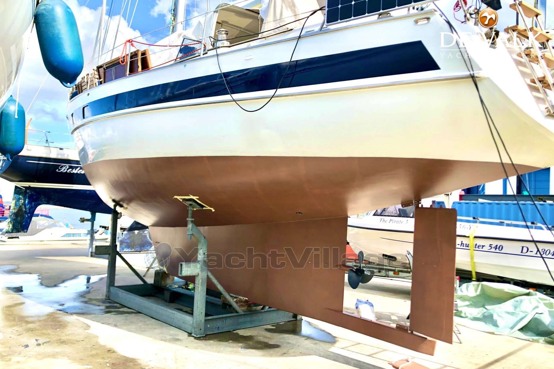 Vela a vela con vela con vela a vela, completamente equipaggiata e ben mantenuta, un Feltz Skorpion IIA. Questo yacht in acciaio con cabina di pilotaggio centrale è stato sottoposto a una completa revisione nell'inverno 2020/21 ed è stato equipaggiato per la convivenza completa, perfetta e autosufficiente durante crociere a lunga distanza. Lo scafo è stato ridipinto nell'aprile 2025.