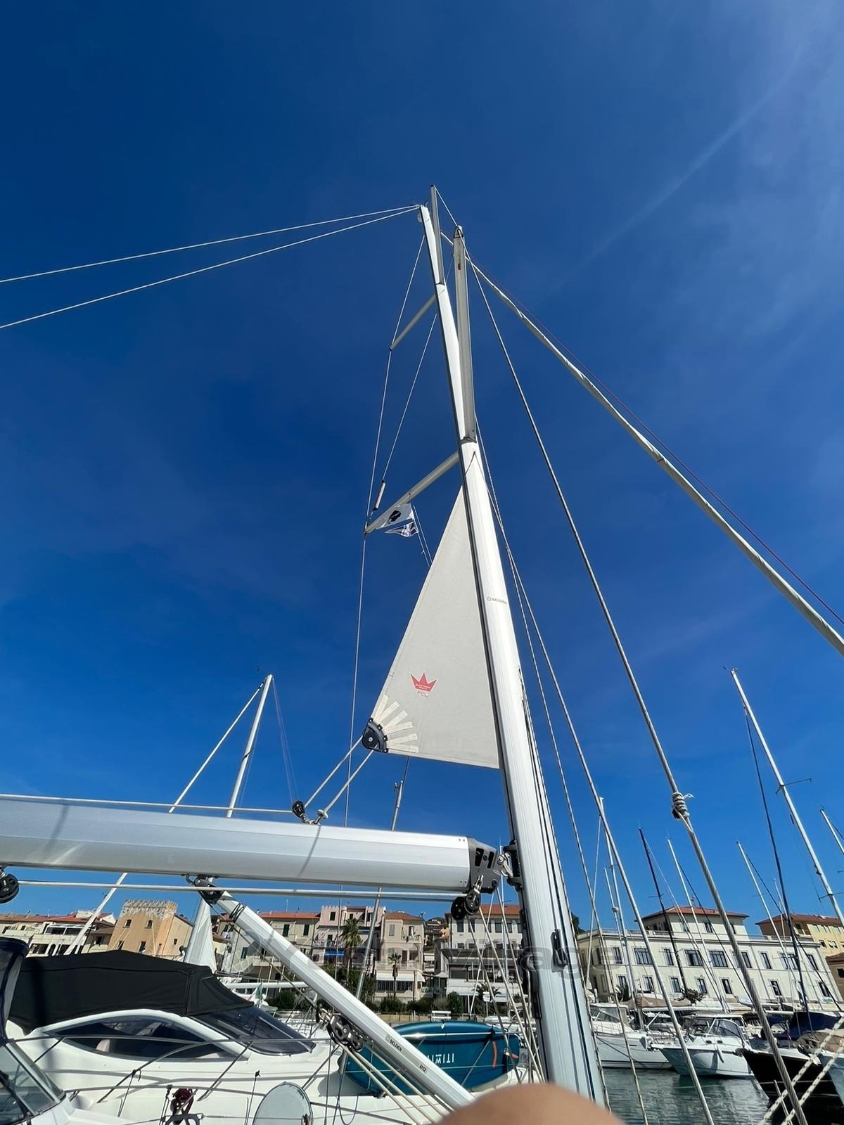 1° proprietario; versione 3 cabine 2 bagni; scafo grigio; ruote timoni in carbonio bianchi; 2 Naupod B&G alle timonerie; tuga teak; tenditore strallo poppa; Ancora Delta 20 Kg + 60 mt contacatena; Windex ; CL randa e fiocco autovirante Elvstrom triradiali full batten; coperture tavolo e ruote; 2023 NUOVO : Code 0 con frullone; 2024 NUOVO : aria condizionata, 4 pannelli solari, inverter 1500w., campana sul verricello ;commissione per intermediazione del 5% +IVA 22% a carico dell'acquirente (IVA si calcola solamente sull' importo della mediazione)