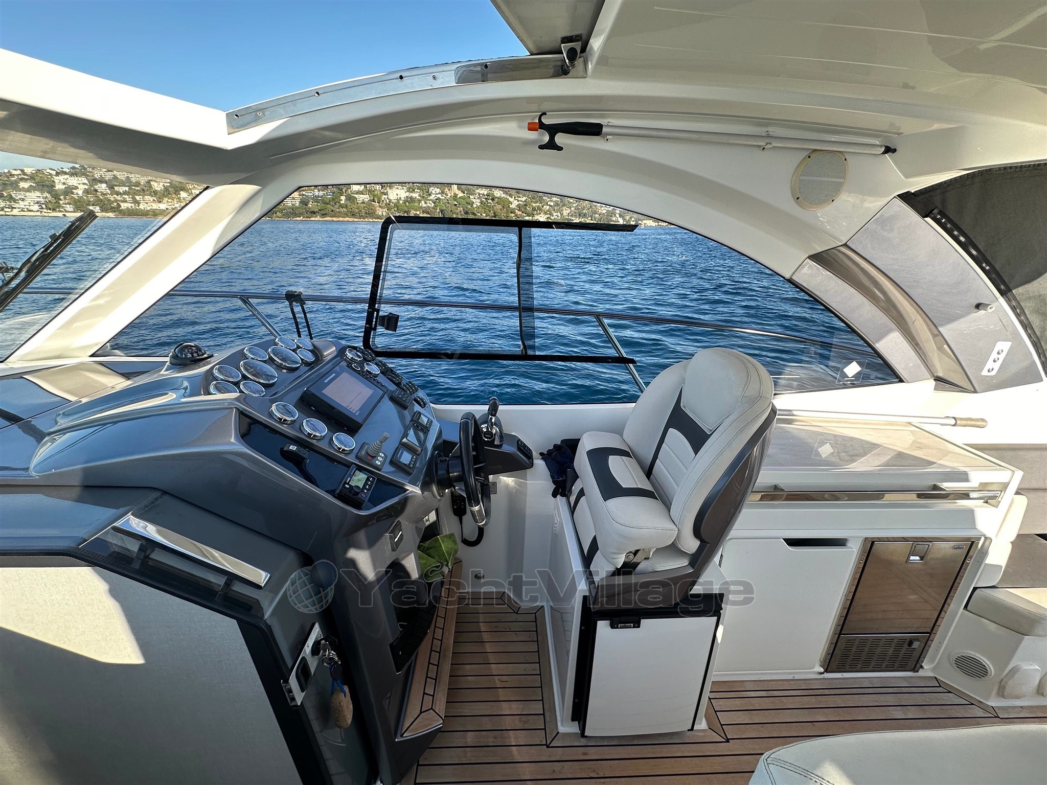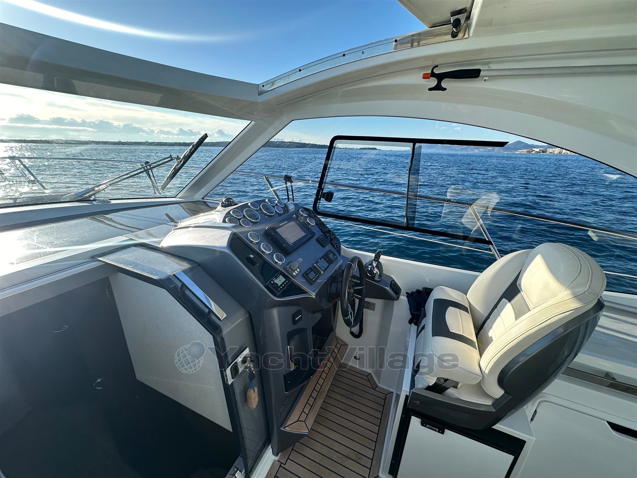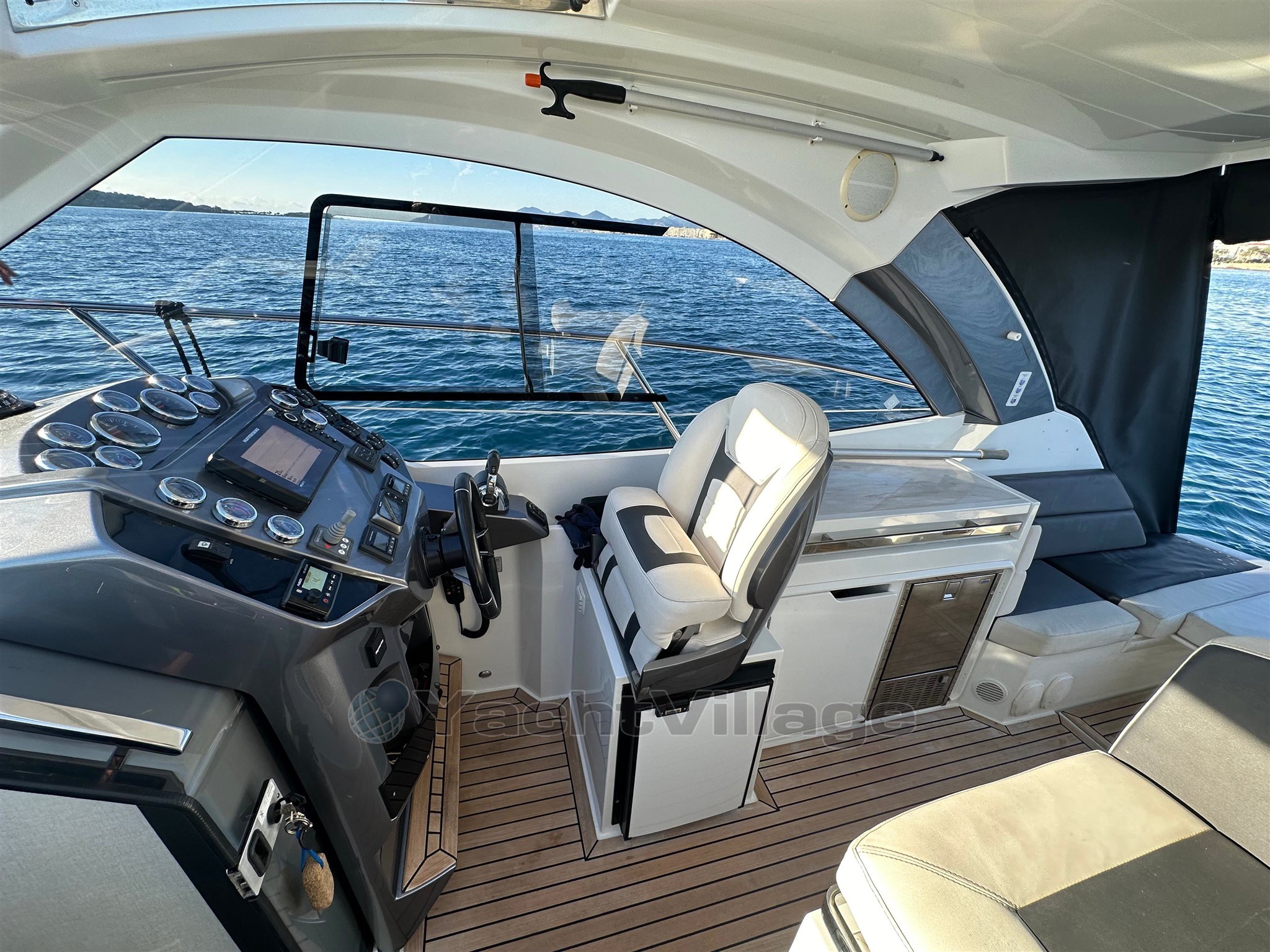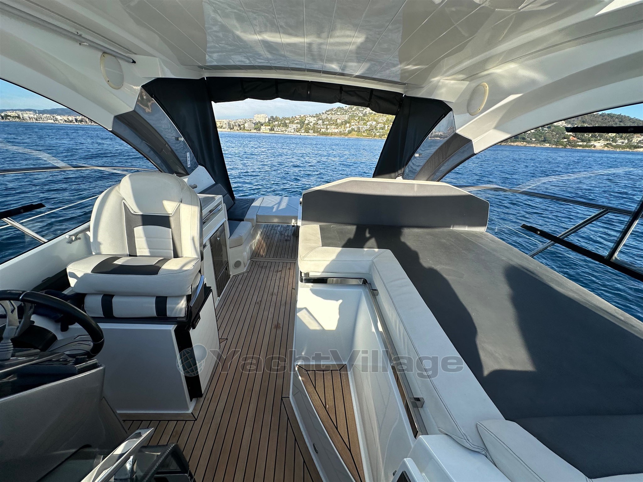 All'esterno, il cockpit è progettato per la convivialità: offre una bellissima zona giorno, un tavolo a pozzetto, sedie comode e copertine solari, con una circolazione fluida verso la piattaforma per il bagno. Il tetto rigido offre una protezione efficace dal sole e dal vento, mantenendo al contempo uno spirito "aperto" grazie alla sua apertura e luminosità. Il ponte e/o il cockpit in teak rafforzano la qualità percepita e offrono una finitura premium. La piattaforma per il nuoto con scala permette un facile accesso al mare e il ritorno dal nuoto, accompagnata da una doccia a cabina di pilotaggio per il risciacquo. La barca dispone anche di un vernicione elettrico con ancora, essenziale per ancoraggi confortevoli. I flap permettono di ottimizzare il trim durante la navigazione in base al carico e allo stato del mare.