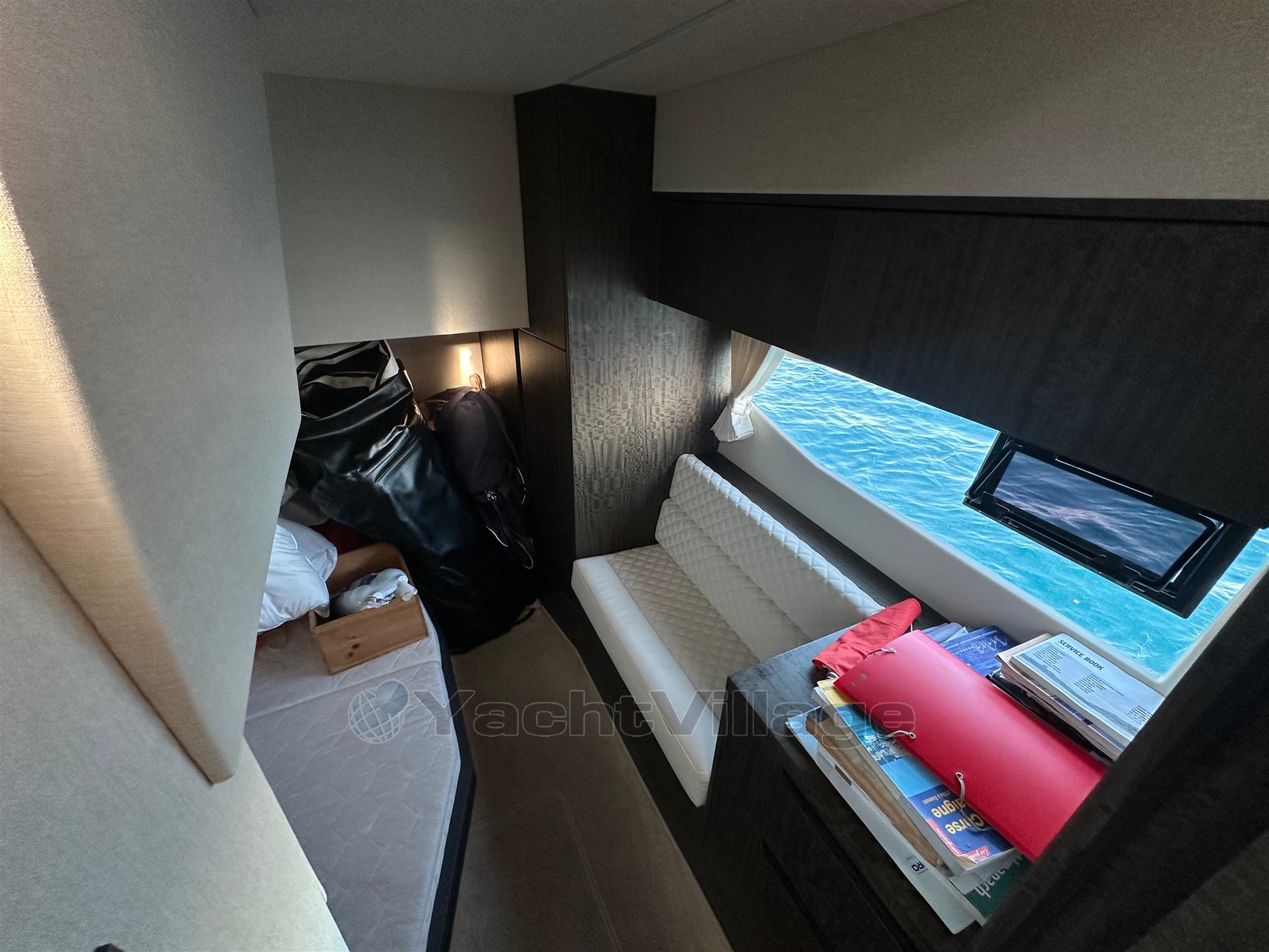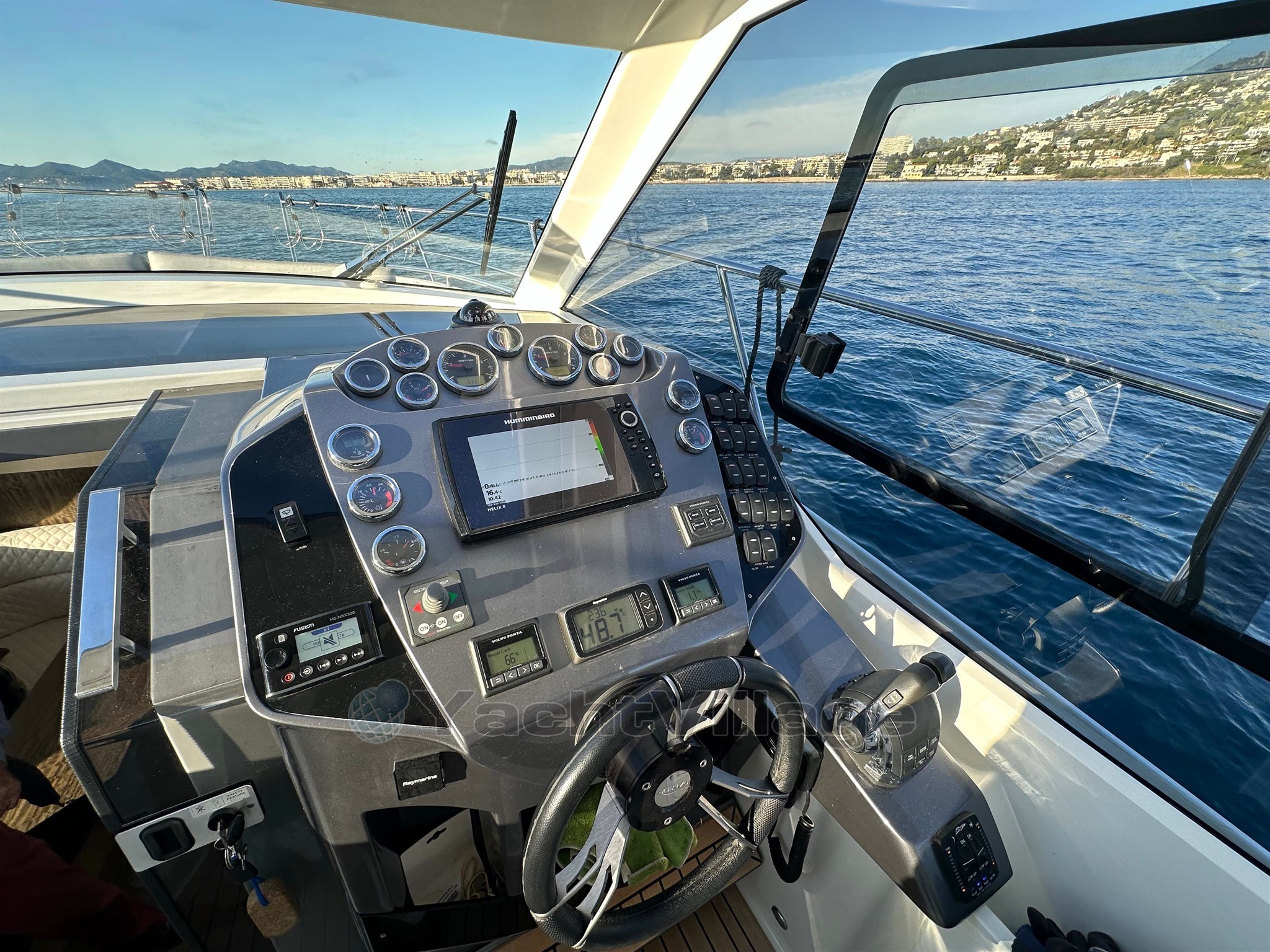 L'equipaggiamento di navigazione è completo: GPS/plotter, sonda di profondità, radar, bussola e centro di navigazione, combinati con pilota automatico e VHF per la sicurezza. Un sistema audio/hi-fi e una TV completano l'attrezzatura per la vita a bordo.