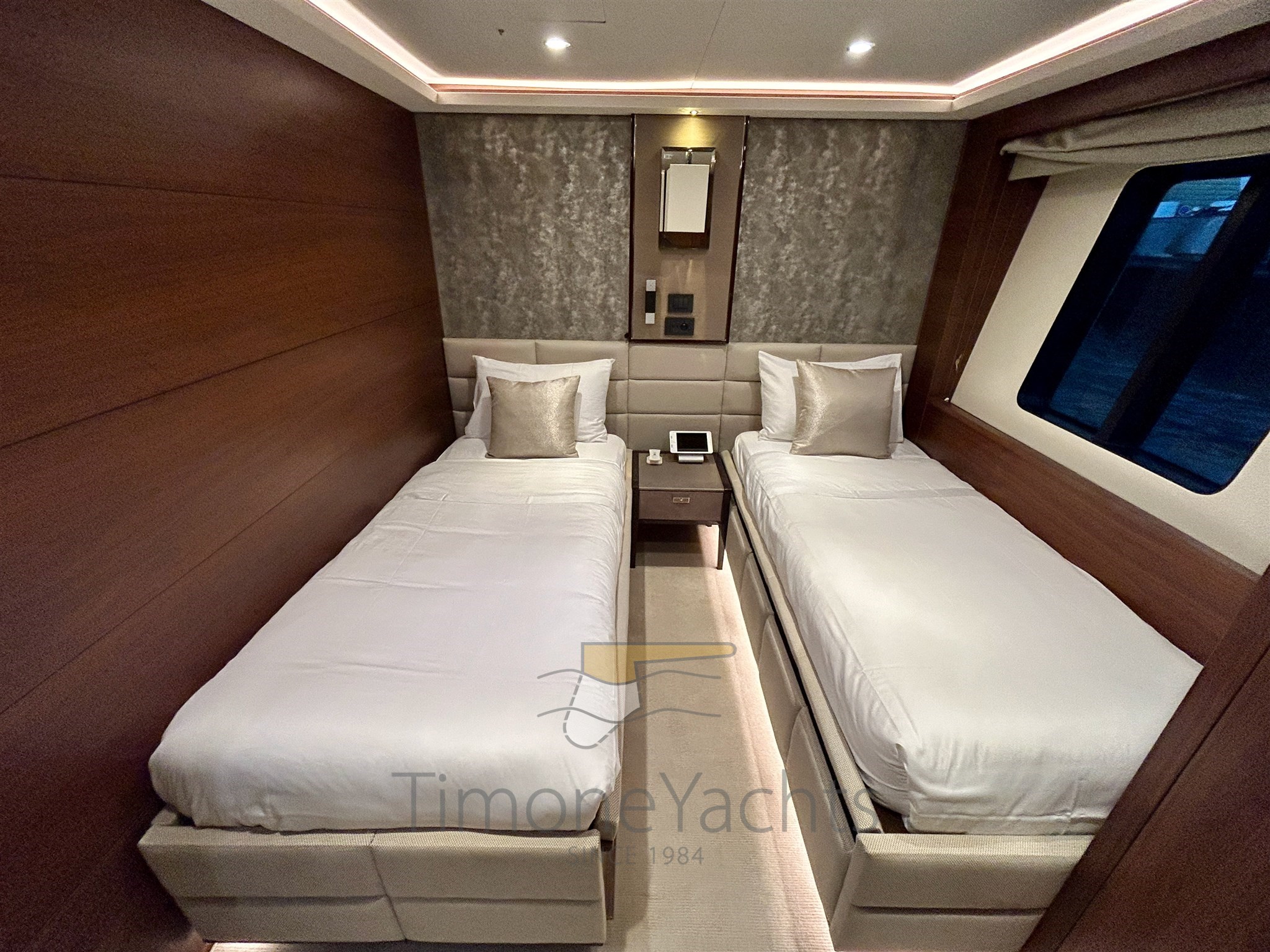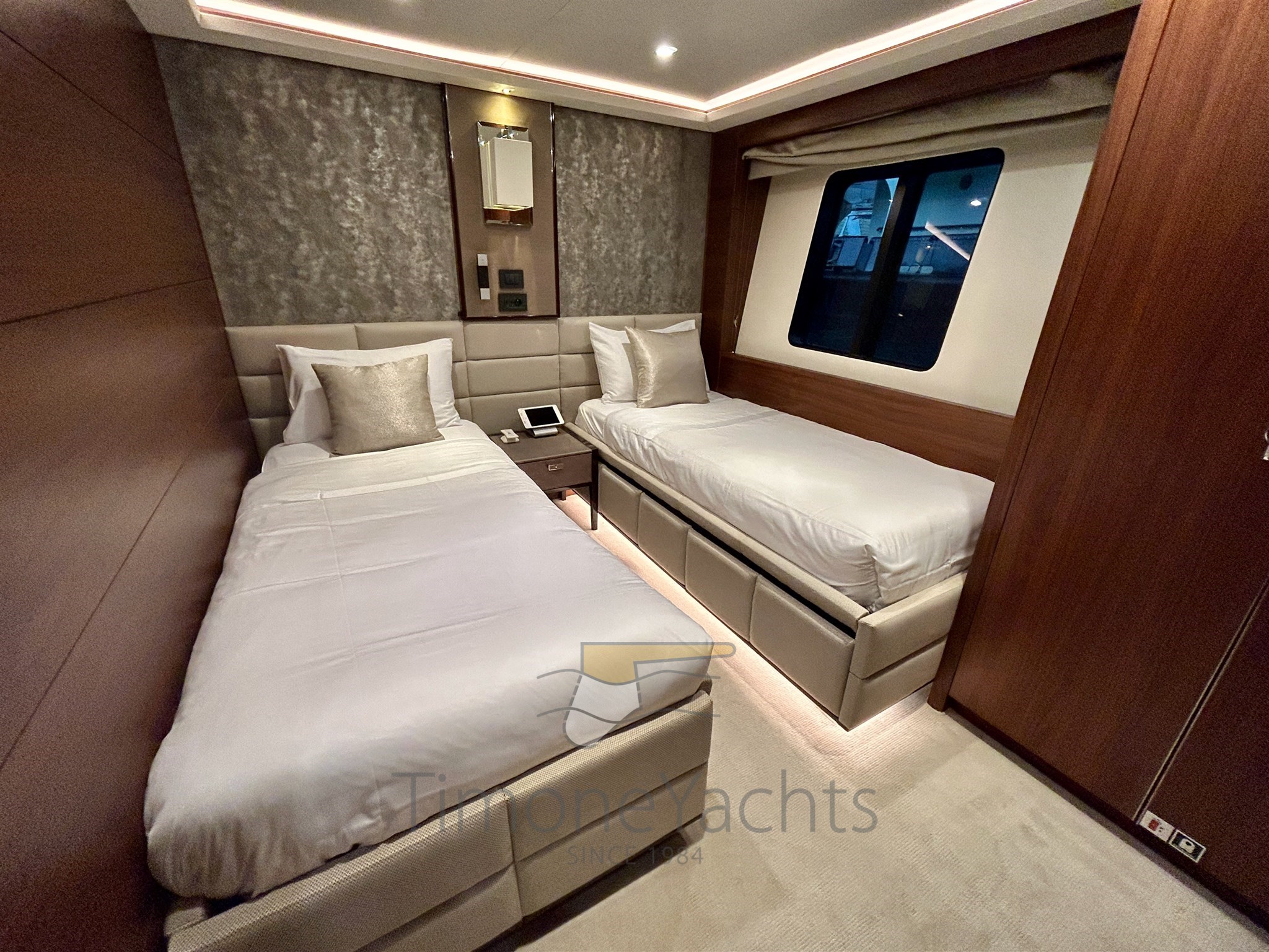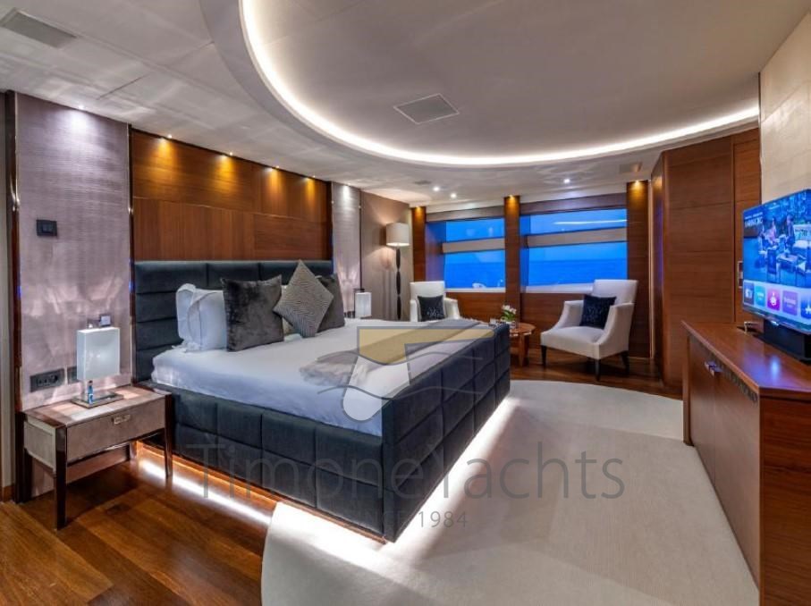 This 395GT Vessel stands out for an impressive volume inside out. She can comfortably accommodate 12 guests in 5 high-end luxury staterooms, where Guests are divided into a stunning beam-wide main deck his&hers Master cabin, 2 VIP cabins and 2 convertible twin cabins, each with additional folding Pullman beds. Each cabin is elegantly furnished and equipped with its own en-suite facilities. She also carries accommodation for 7 crew members for maximum service while on charter.