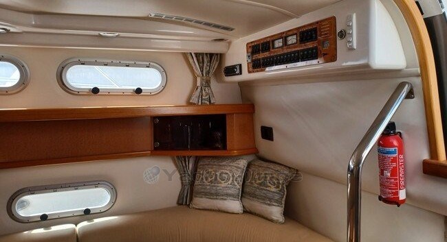 La barca viene venduta per l'ingrandimento. Una barca molto bella, efficiente nei consumi e affidabile. Il proprietario l'ha acquistata l'anno scorso dal primo proprietario per vedere se era l'hobby giusto per lui e la famiglia e può dire: semplicemente fantastico, ecco perché ora c'è anche l'ampliamento. La barca è molto ben attrezzata, tra l'altro con pilota automatico e anche un generatore e TV è a bordo. Dalla sua consegna nel 2001, è stato regolarmente revisionato in una stessa officina.