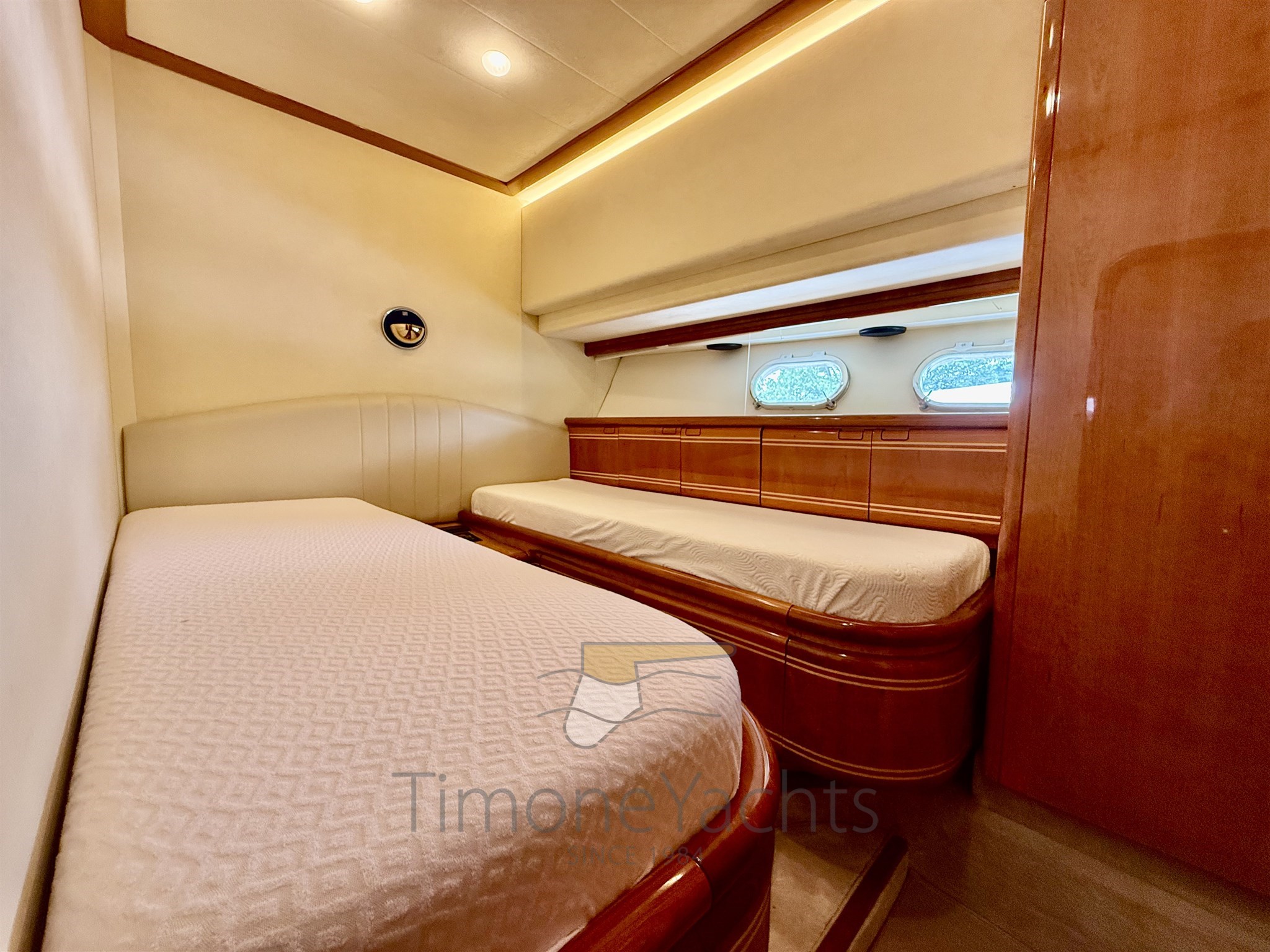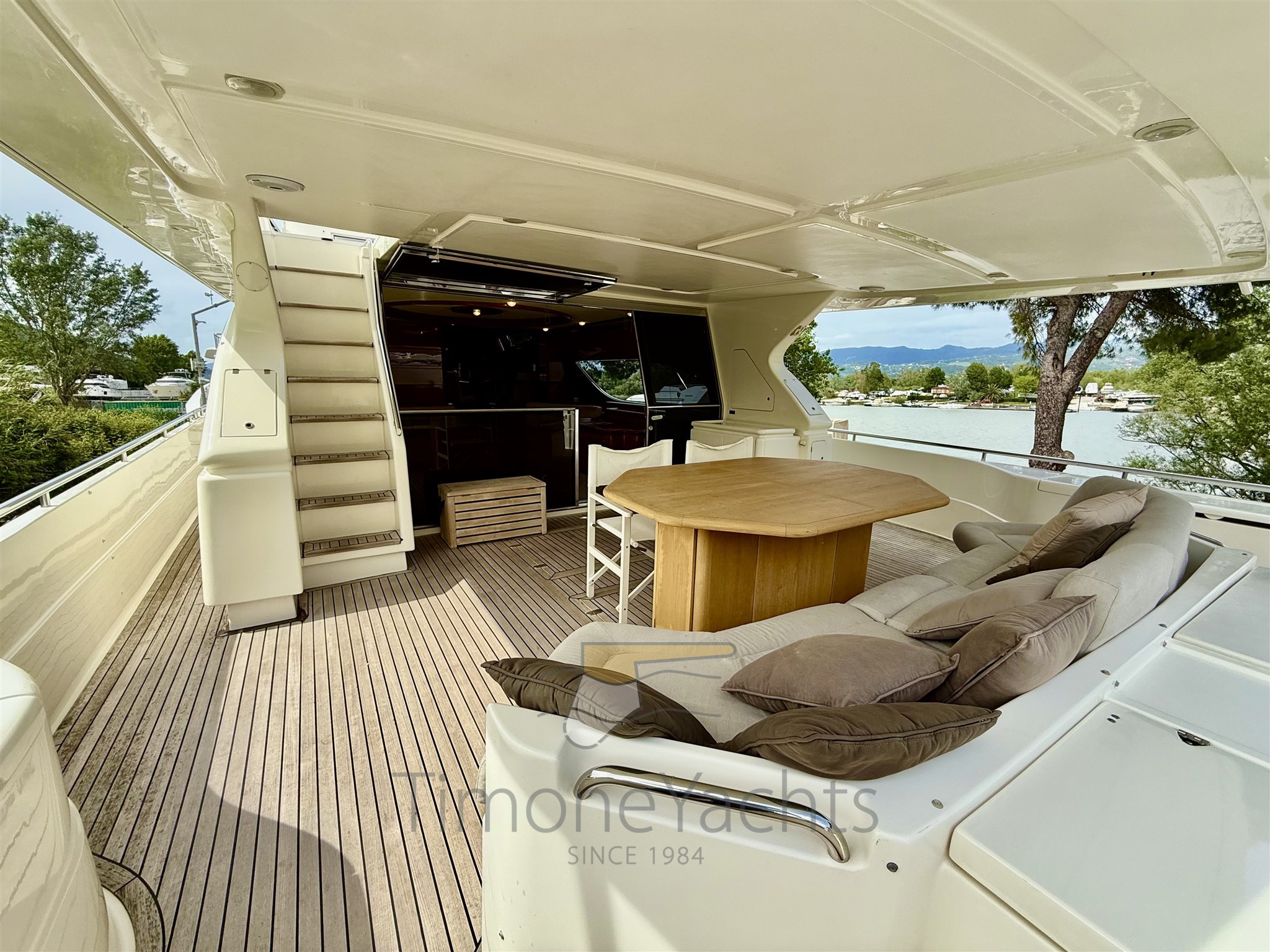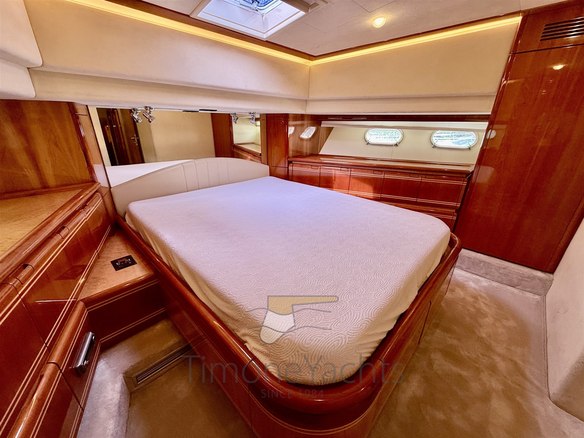 Splendido flybridge con 4 cabine e relativi 4 bagni con bidet. Più tre posti letto crew in due cabine.