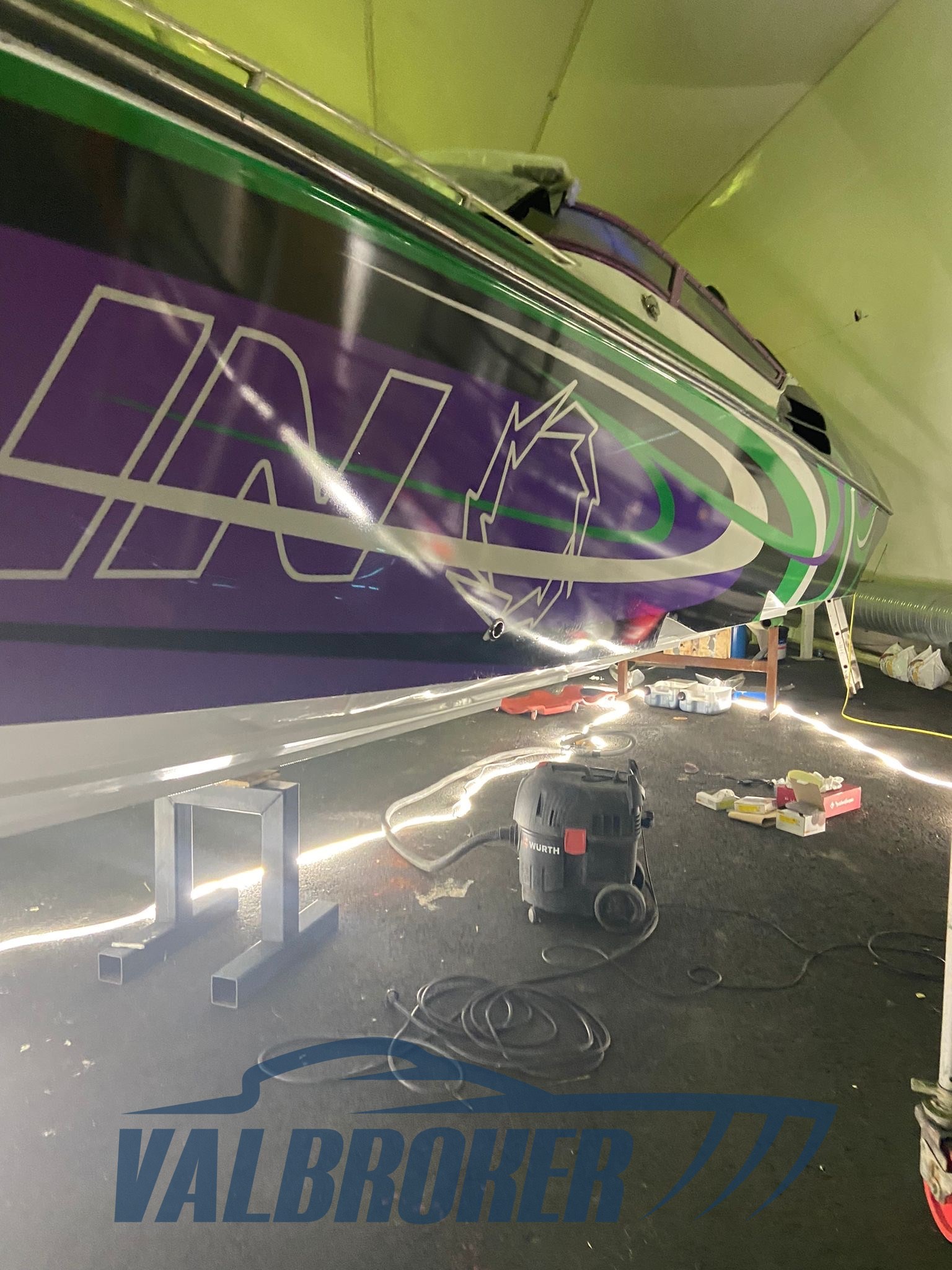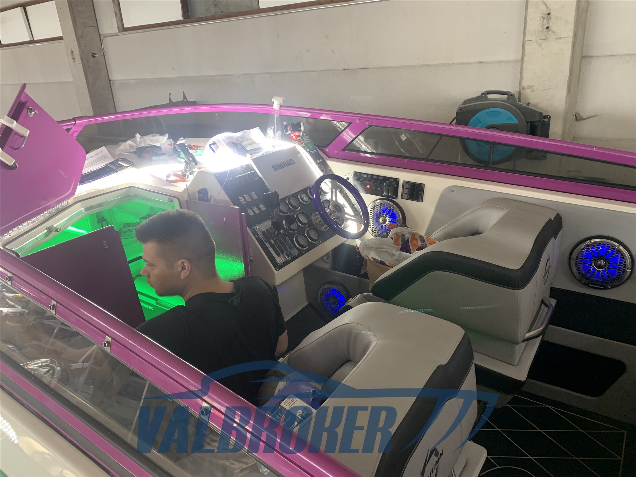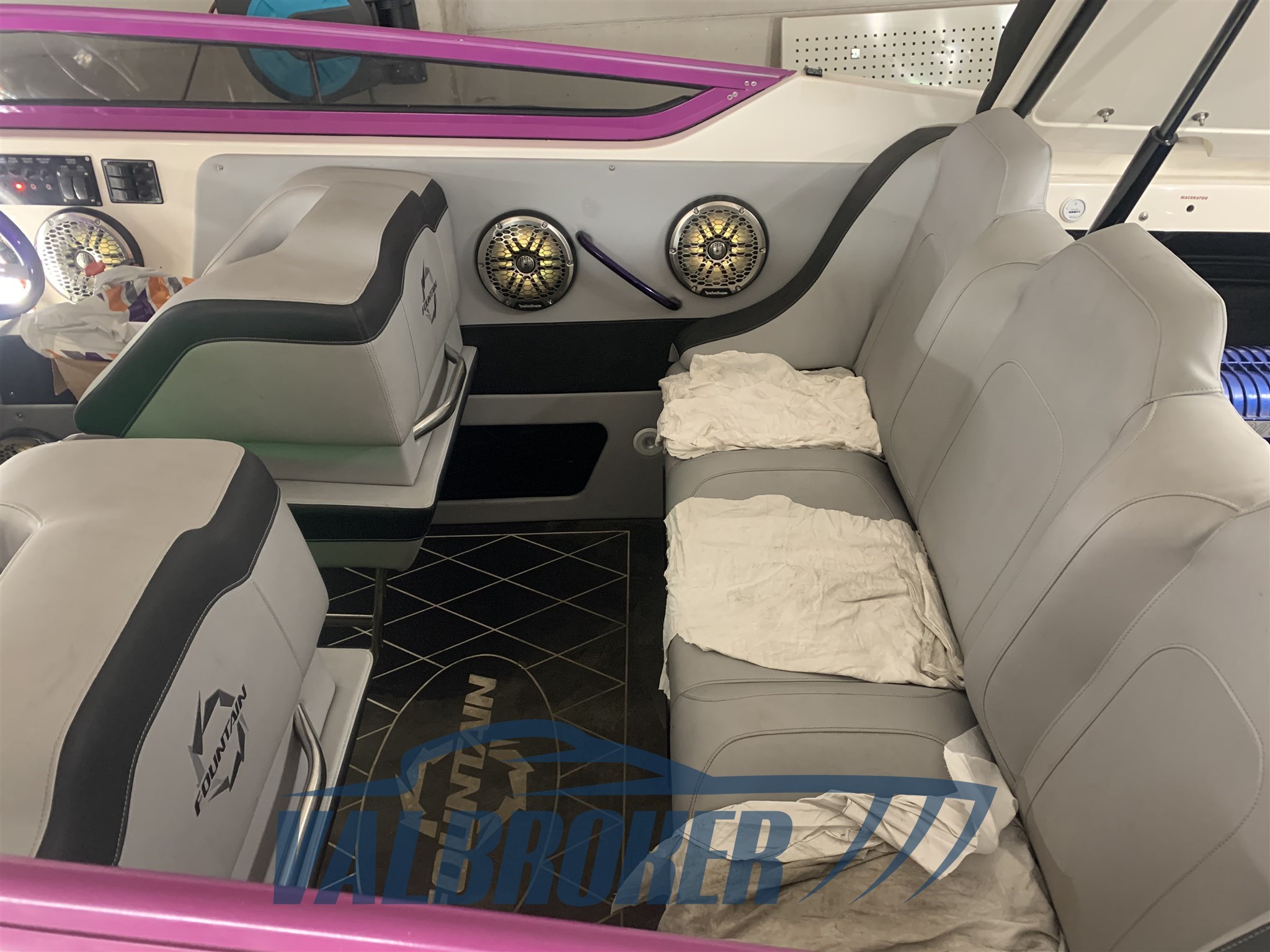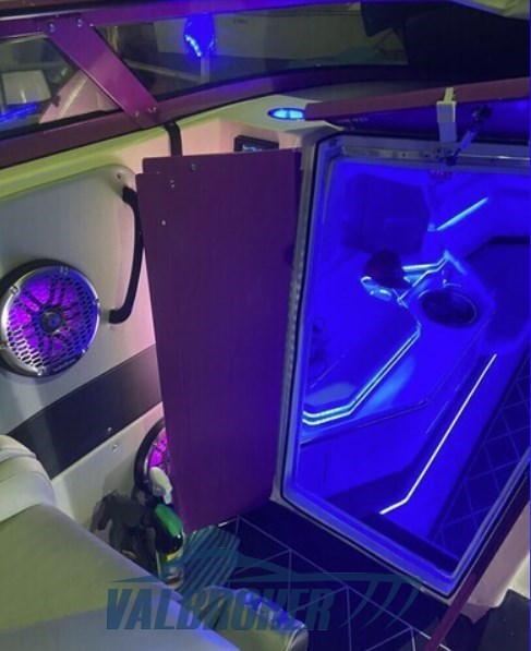 La moquette è stata rimossa e sostituita con Flexiteak, facile da pulire e non assorbe l'umidità e può anche essere levigato se c'è la necessità di pulire i graffi. La barca è stata completamente wrappata.