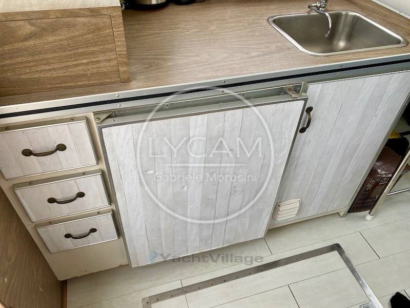 plancetta di poppa, passerella manuale, tendalino fly, staccabatterie, blowers, staccabatterie, scaletta bagno in teak, tergicristalli,,salpa ancora elettrico, faro profondità, asta bandiera, presa 220V banchina, presa 12V, pompe sentina automatiche, luci di via