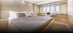 1 armatoriale matrimoniale king size a tutto baglio centro nave con scrivania, area salotto e cabina armadio; 1 VIP matrimoniale a prua; 1 ospite doppia (letti scorrevoli); 1 ospite a castello; bagno privato in ogni cabina (cabine doccia e pareti bagni in corian e ceramica, wc/bidet elettrici Planus).