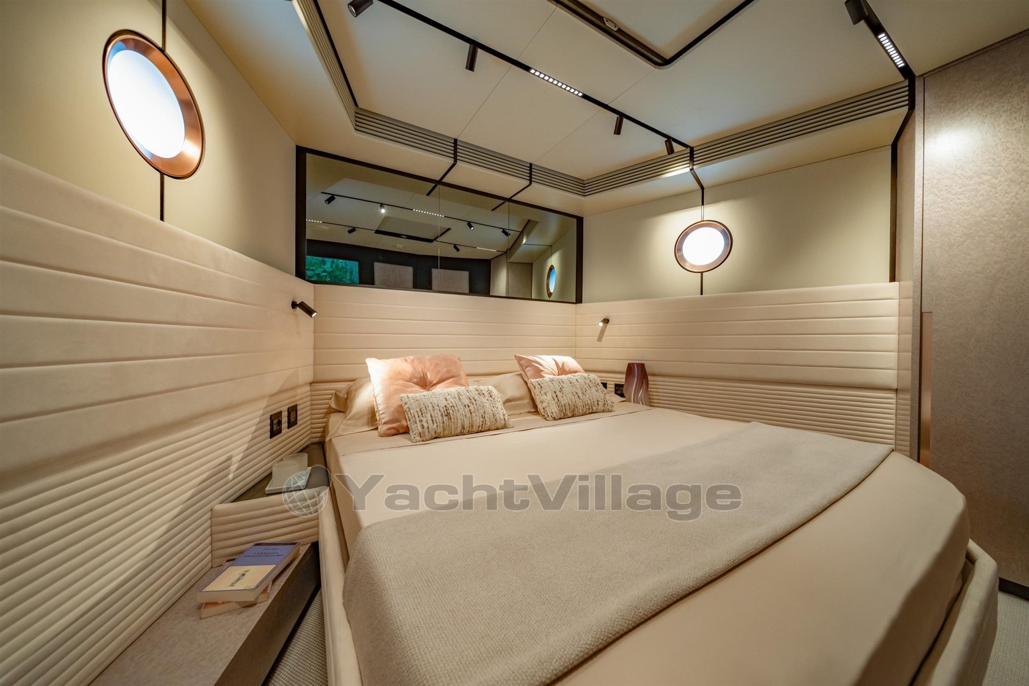 La versione opzionale con 2 cabine e 3 bagni si differenzia dalla precedente per la grande suite del proprietario a poppa, che dispone di scrivania, divano e cabina per spogliatoio, degna di barche decisamente più grandi.