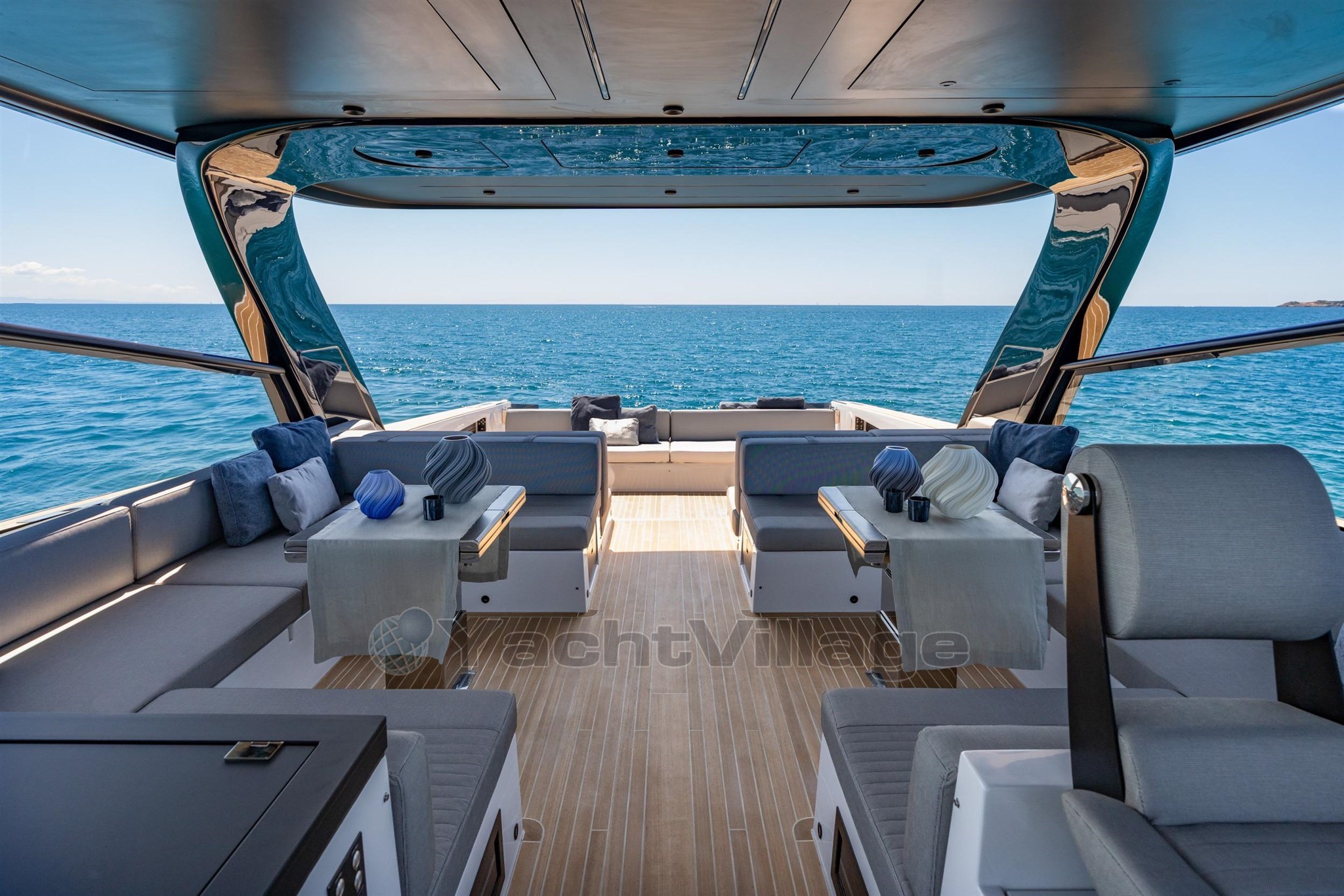 Il nuovo Soft-Top è stato progettato con l'intento di introdurre un elemento funzionale per proteggere l'ampia area lounge, preservando al contempo l'equilibrio delle forme senza spostare verso l'alto il volume visivo della barca.