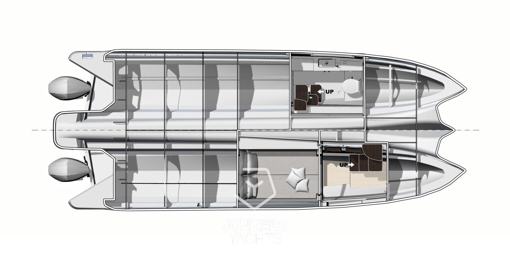 Il TH33 ridefinisce l'esperienza powercat. Il suo progetto collaudato combina ampi spazi abitativi, stabilità eccezionale e un alto livello di comfort per la vita a bordo. Con le sue qualità mariniche incomparabili e l'ingegnosa innovazione, ogni uscita è un invito a vivere il mare in modo puro e autentico, senza compromessi.