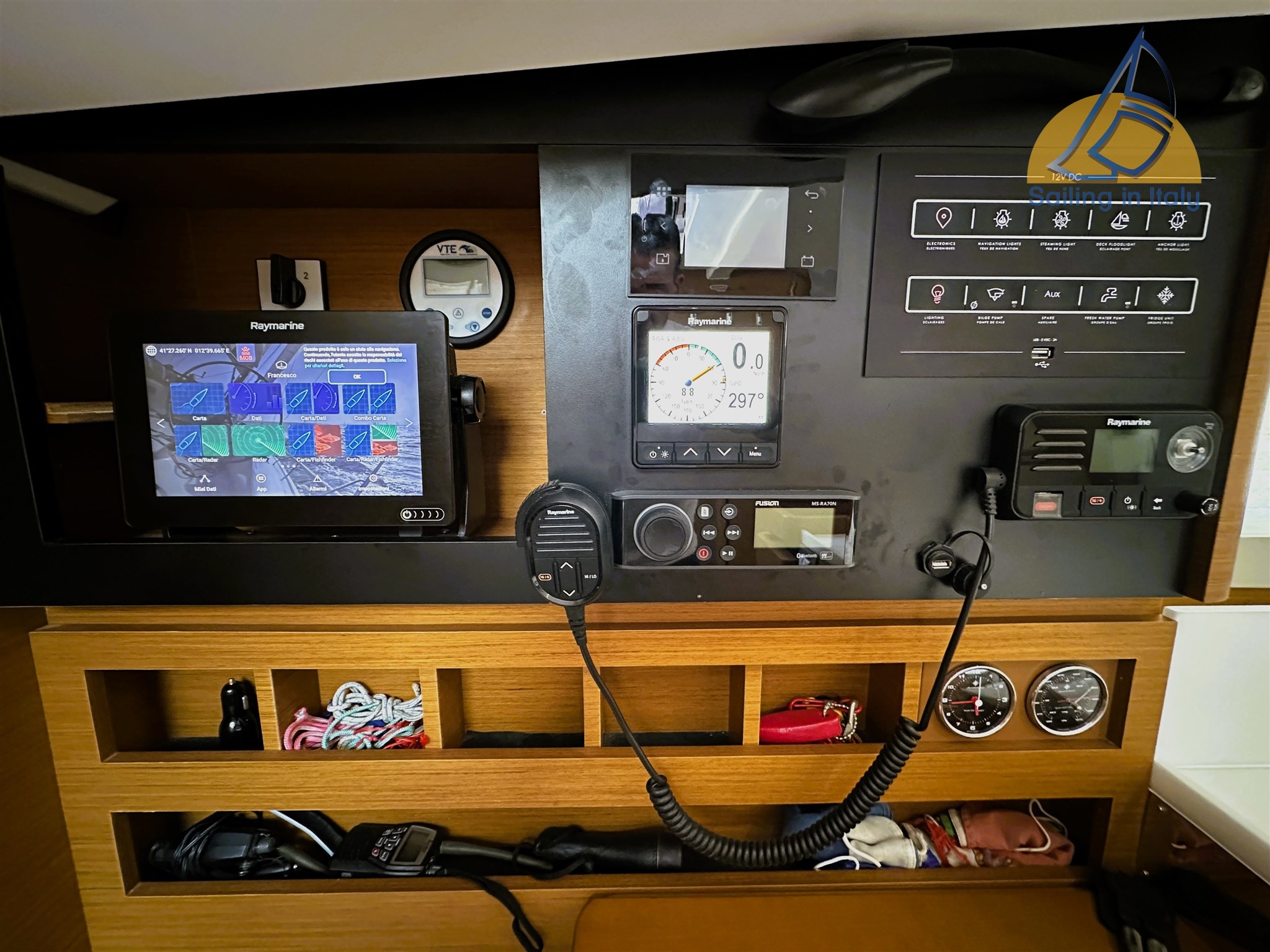 2 плоттера Raymarine Axiom 7"; Радиолокационный аппарат Raymarine ; AIS ; Автопилот с дистанционным управлением; VHF DSC ; Внутри и на улице многофункциональные дисплеи; Полностью оснащён даже для сложной навигации