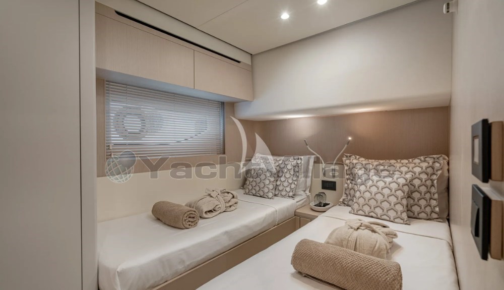 SBK — это Azimut 68 Fly 2024 года, идеально подходящий для комфортного и стильного чартерного опыта. Она вмещает до 8 гостей в 4 каютах (мастер, VIP и два Twins) и предлагает яркие, современные интерьеры с большими окнами и расслабленную, гостеприимную атмосферу.