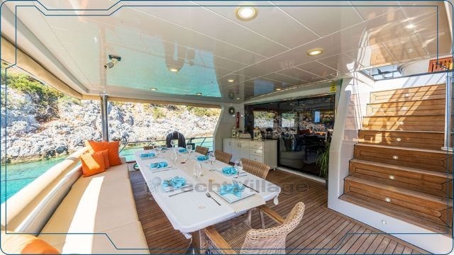 Built with a strong focus on comfort, autonomy, and seaworthiness, she offers generous interior volumes, excellent stability at sea, and well-designed outdoor living areas. Her warm interior atmosphere, refined wood finishes, and practical layout make her equally suitable for private ownership or commercial use in the Mediterranean and beyond.