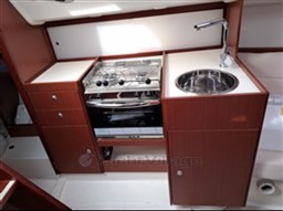 Кокпит оснащён кареткой с гротным парусом, который делит её пополам, транец может быть открыт. Внутри находится каюта сзади — салон с центральным «подковообразным» сиденьем, отделённым от передней каюты занавеской, ванной комнатой и камбузом.
