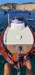 Из раздвижного трапа, расположенного рядом с консолью, вы спускаетесь под палубу. Его приветствует обстановка, характеризующаяся изысканными материалами, с отделкой из вишни и красного дерева, где вы можете почувствовать мастерство в каждой детали. На площади находится обеденная зона, которая расположена на левой стене, с диваном, который можно превратить в кровать. Напротив, в отдельной комнате, находится туалет с туалетом и открывающимся иллюминатором. Двуспальная кровать расположена в носовой части вершины. Нет недостатка в практичных шкафчиках под кроватью и под диваном в обеденной зоне. Ванная комната находится на уровне глаз, что необычно для лодок такого размера.