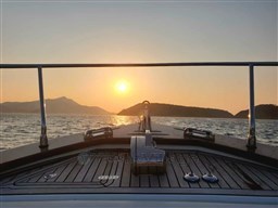Благодаря наличию удобного U-образного дивана и стола, кормовая часть сконфигурирована как удобная зона для отдыха, где можно наслаждаться плаванием под парусом. В носовой части, которая легко расположена, хорошо защищена поручнем из нержавеющей стали, находится другая и удобная зона для принятия солнечных ванн.