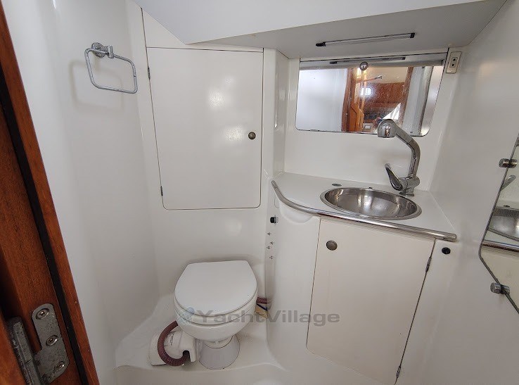 Ready to sail, this sailboat offers easy and safe sailing thanks to its spacious interior and comfortable cockpit equipped with a large folding table for alfresco dining. The double steering wheel ensures excellent visibility and manoeuvrability, the bow thruster facilitates port manoeuvres and the mooring system is easy to use thanks to the electric windlass. It has three cabins and two bathrooms (one of which has an electric toilet, installed in 2024). The galley is equipped for the preparation of meals on board with refrigerator, oven, microwave and plenty of storage. In excellent condition, it was fully serviced in October 2024. Spanish flag, ITB (Spanish technical inspection) valid until October 2029 for zone 1. Life raft eight people, nine from 2022, inspection valid until 2026. Two 180W flexible solar panels on the bimini. Disconcerted in October 2024 and treated with SilicPro. 1975 hours of sailing.