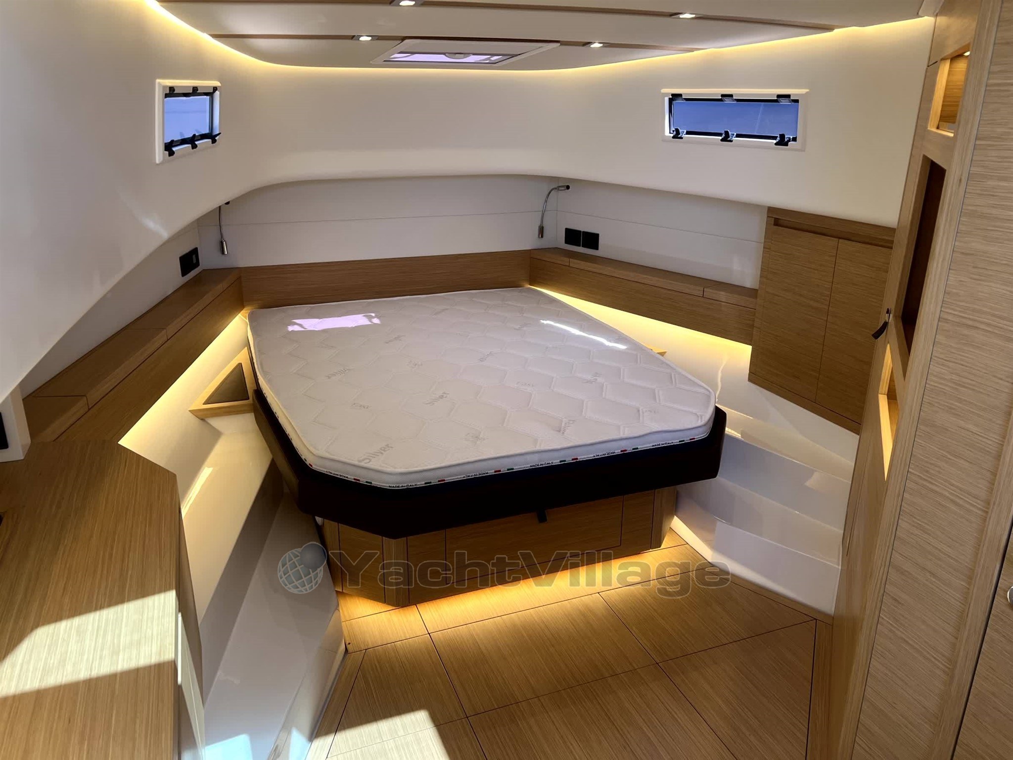 • Layout and spaces inside: Каюта хозяина, головка с отдельным душем, кормовая каюта с 2 кроватями.