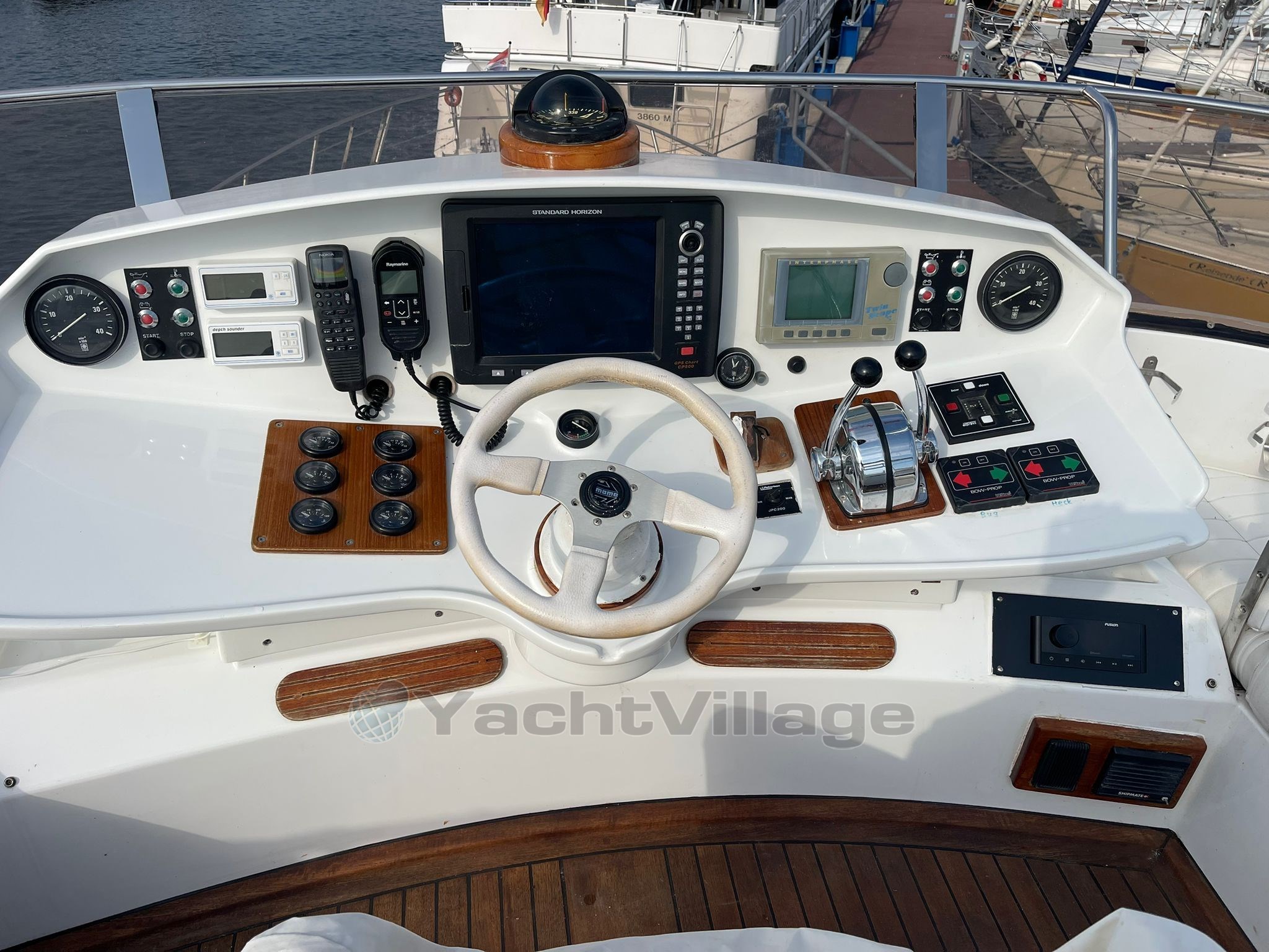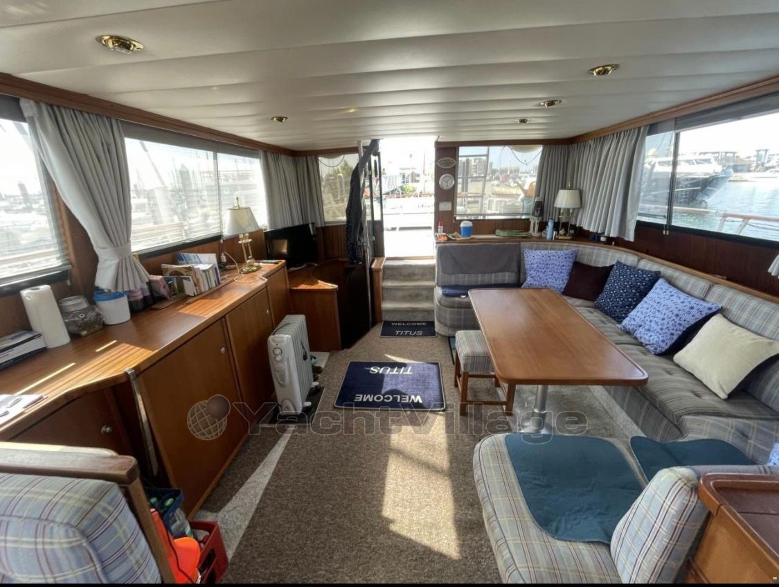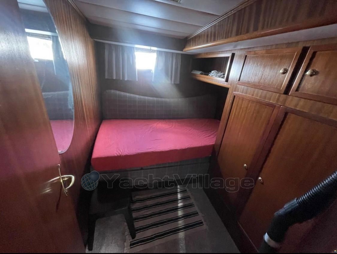 Perfect ship to live on! Equipped with 2 x Iveco diesel engines á 630 hp, approx. 1,800 operating hours, bow and stern thruster, 4 new consumer batteries 2024 and new Mastervolt 1000Ah charger, lying area in the bow renewed incl. cover, new upholstery for the bench seat in the stern with cover, owner's cabin aft with large double bed and two additional single berths, TV with DVD player new, single cabin port, bow cabin with double bed, 2 x bathroom with electr. toilet and shower, dinette lowerable with upholstery, table in saloon also lowerable, teak aft and on the side decks, Eberspaecher diesel heating, electr. Windlass with stainless steel anchor and chain (approx. 40 meters), galley with ceramic hob, microwave and refrigerator, 2nd refrigerator in the saloon, electr. Stern anchor windlass, large hybrid touch chartplotter, gangway, surveillance camera Reolink 360 degrees new, new DAB+ radio vision and 4 speakers on the flybridge, satellite antenna Sinus Premium TWIN LNB, new TV living area, Yamaha dinghy with 15 hp outboard engine and driver's cab (3 operating hours), generator 4 kVA. The berth in the ancora Marina can be taken over.