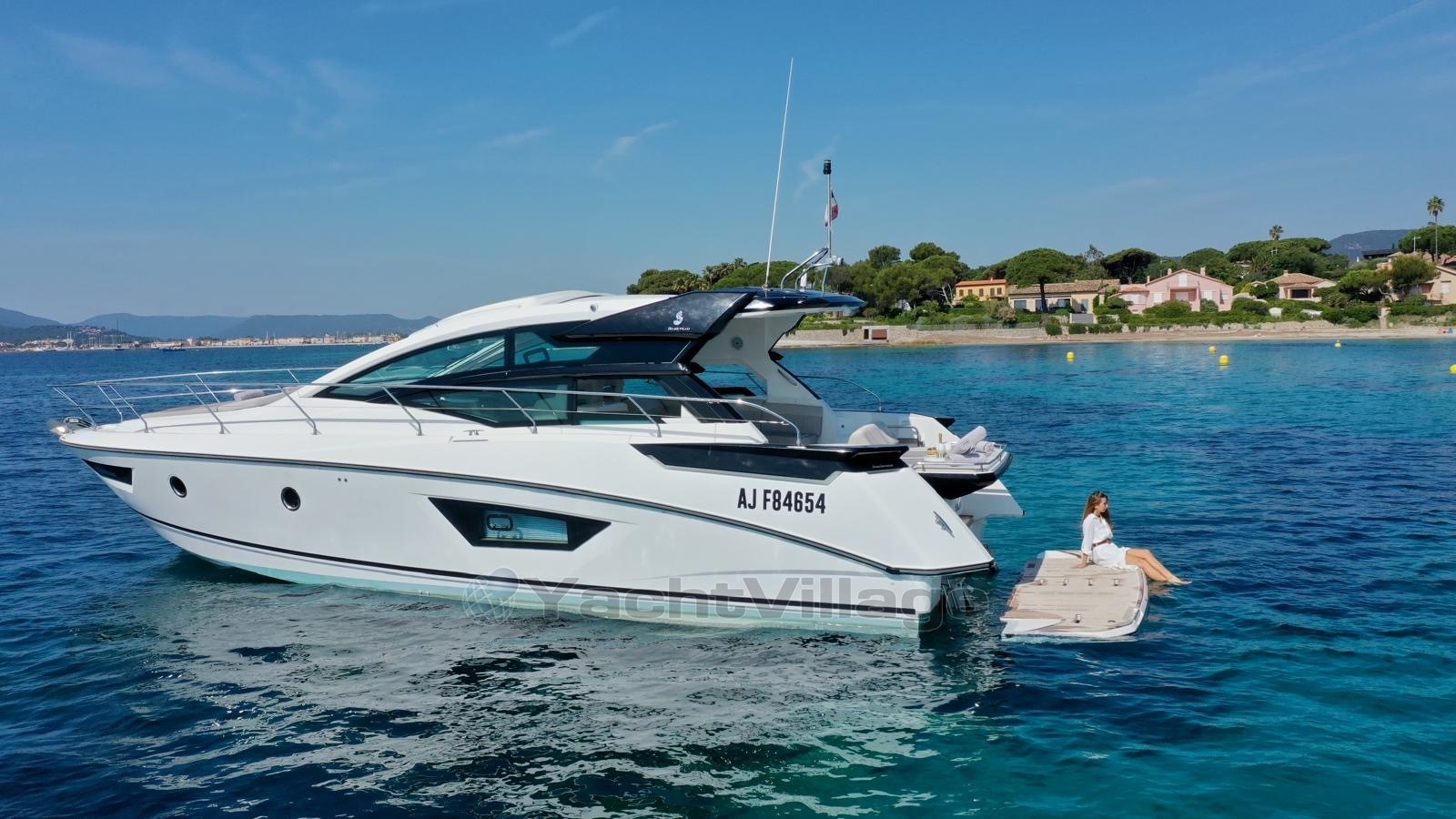 A 2019 sport yacht in exceptional condition with only 807 engine hours, powered by reliable and powerful Volvo Penta D6-370 engines totaling 740hp. Modern and elegant design with modular cockpit and teak finishes, spacious and bright interior with two cabins and two bathrooms. Complete Garmin navigation electronics, Cummins Onan generator for autonomy, and premium comfort equipment. Based in Grimaud in the Var, in the heart of the French Riviera.