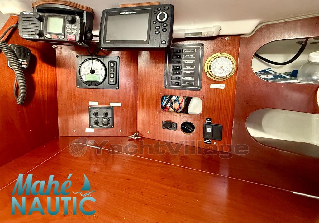 depth sounder, speedo, NKE wind vane, Huminbird Helix 5 gps, and France map, vhf RT 550