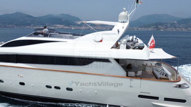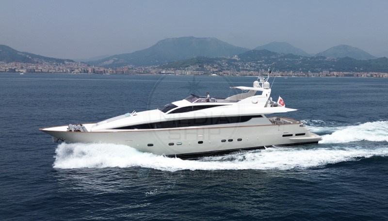 Between 2022 and 2021, the ANTAGO 90 underwent a refit that included: the overhaul of all on-board electrical and hydraulic systems, a comprehensive revision of the mechanical parts and generators, new interior and exterior furnishings, replacement of the teak (deck and aft platform), refurbishment of the lighting, replacement of cushions and awnings, propeller control and balancing, rudder and flap blade inspection and maintenance, complete repainting of the hull and superstructures, inspection and overhaul of mooring cleats and fairleads. The ANTAGO 90 is excellently equipped with a hydraulic bow thruster, 2 generators, Idromar watermaker, two mooring winches, autopilot, internal/external GPS, hot/cold air conditioning, safe, washing machine, dryer, cameras in the cockpit, on the flybridge, and in the engine room, 4 luxurious cabins with double beds, plus 1 single cabin with bathroom, 3 crew cabins and 2 bathrooms (total of 5 berths), a beautiful fully equipped kitchen, hydraulic gangway, aft platform, flybridge davit, TV in the saloon and all cabins, and a Hi-Fi system with external speakers. - Check the full brochure, the video and the sea trial on our Web site MEDIA SHIP