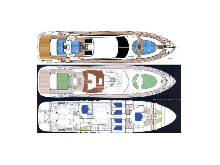 4 каюты, 4 ванные комнаты, две внутренние столовые, ежедневная ванная комната, 2 независимые каюты экипажа