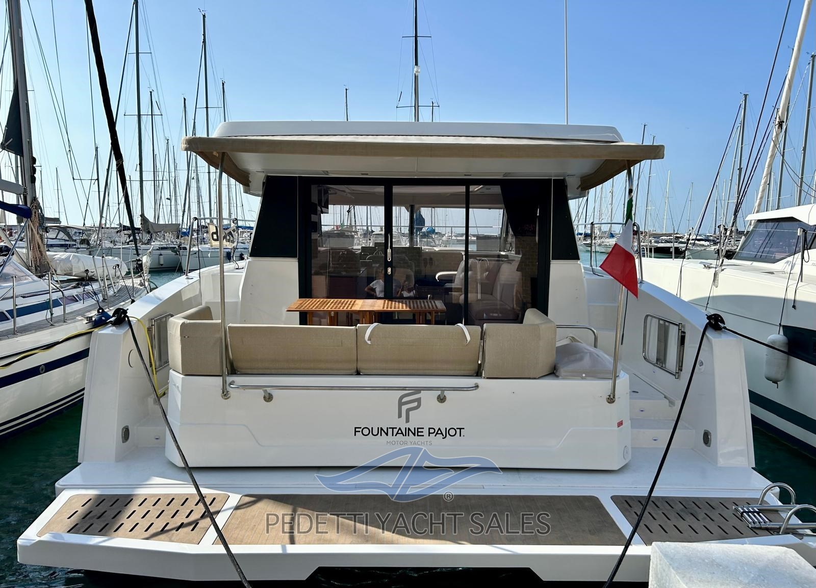 Fountain Pajot My4.S является 11,02 м Моторная лодка построено в 2025. Швартовка в Toscana (Италия) доступен в продаже на 530 000 EUR на YachtVillage.net. лодка, Лодки, лодка В продаже, Лодки используемый, Моторная лодка В продаже, Моторная лодка используемый, Моторные лодки В продаже, Моторные лодки используемый, Ranking 8 / 10