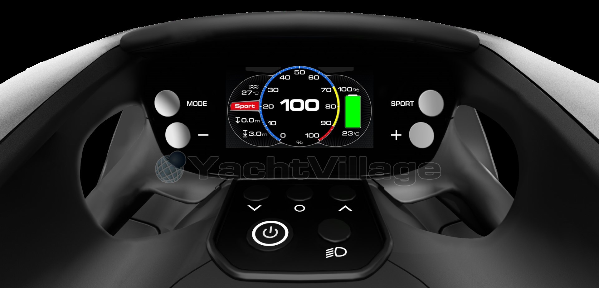 SEABOB F9 может похвастаться цифровым акселератором, управляемым большим пальцем. Это используется для бесступенчатой регулировки мощности двигателя в соответствии с вашими потребностями. Датчик переключения позволяет переключаться между нормальным режимом и режимом погружения. В режиме «Погружение» производительность гораздо более чувствительна для комфортного подводного путешествия.