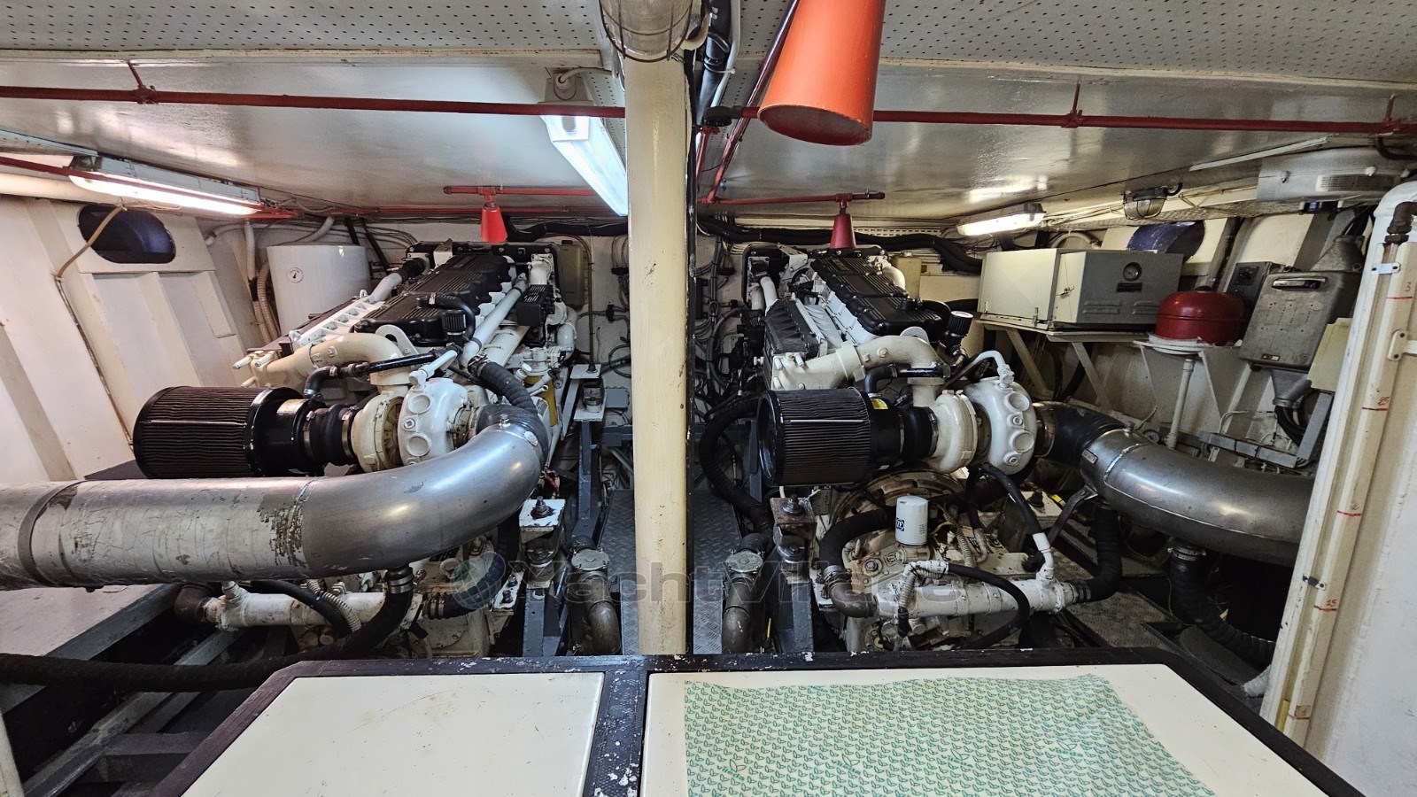 Последние внеочередные работы по техническому обслуживанию: замена двигателей G.M. с электронным управлением Caterpillar и электронными дроссельными заслонками (2004) - замена генератора на 16 кВт CAT - замена тикового материала кокпита (2005) - покраска корпуса (2008) - замена всех забортных клапанов - замена аккумуляторов двигателя, обслуживания и генератора - замена салона и коврового покрытия мостика (2018) - капитальный ремонт лебедки брашпиля (2018) - капитальный ремонт спасательных плотов - замена Кухонная техника Варочная панель, духовка, холодильник с морозильной камерой (2022) - Внешние подушки (2022).