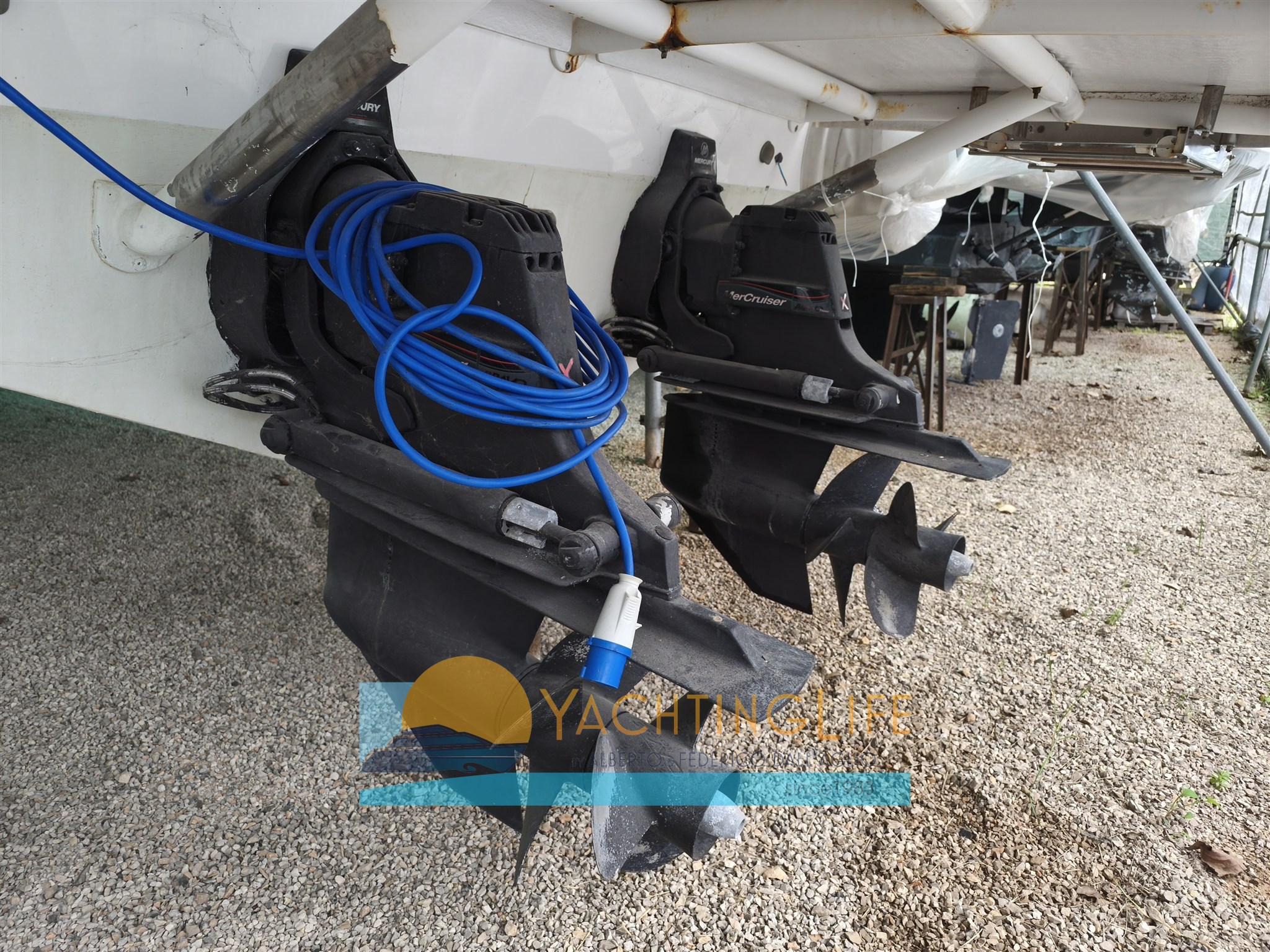 Корпус с двойным шагом — использовался очень мало — несколько часов движения и всегда сопровождался официальной мастерской Mercruiser — уникален на рынке: двигатели 8.2 mag мощностью 380 л.с., Bravo 3X футов и система Axius с джойстиком для маневрирования — Тик кормовой платформы для замены — Фотографии доступны по запросу — Оплачивается с НДС или освобождается —