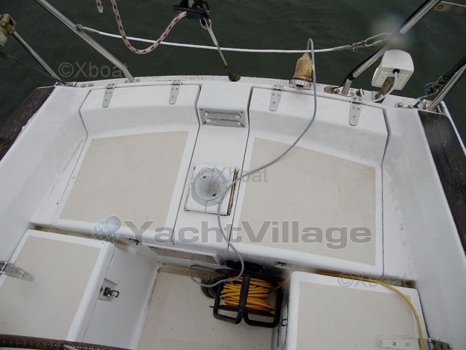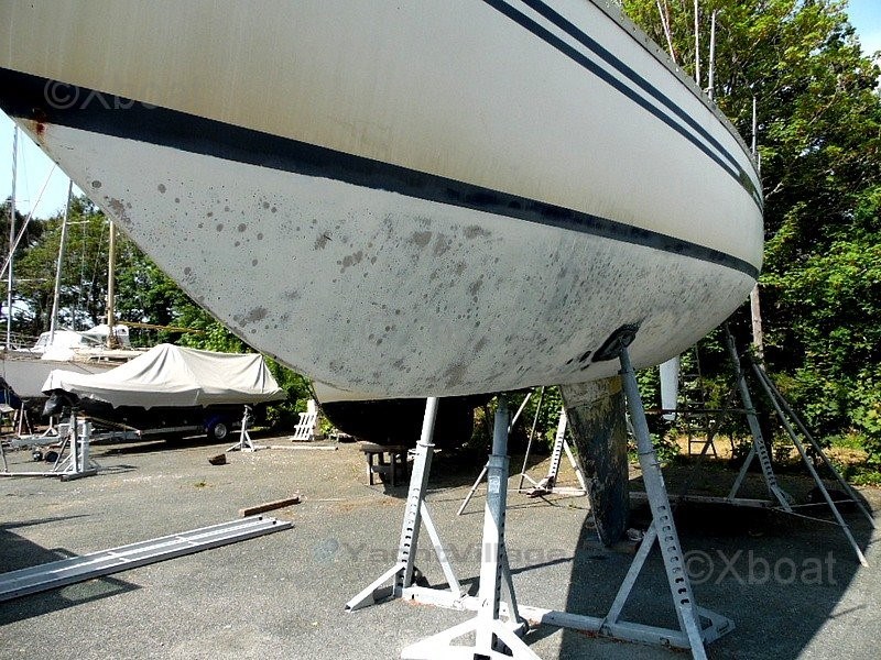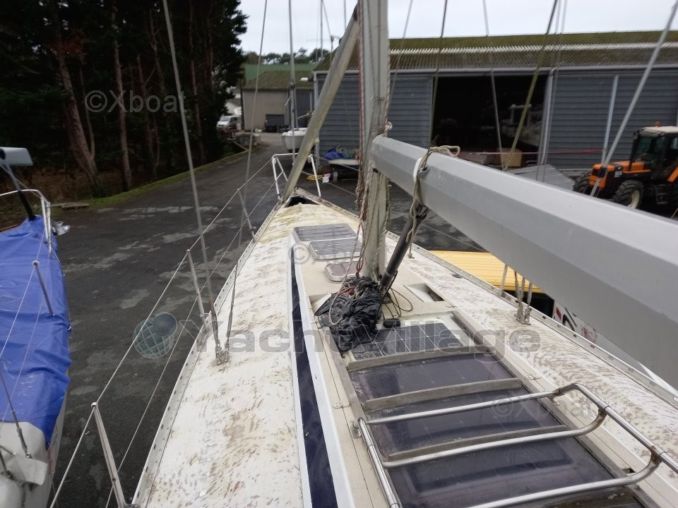 Some work is currently underway: The vessel is currently stored ashore in a shipyard. The hull has been stripped of its antifouling, revealing small surface osmosis blisters that are currently being treated. The deck has been stripped of its teak, sanded, epoxy applied, then the deck has been painted with a non-slip coating and its watertightness checked. All seacocks and valves have been replaced, and the hull has been sanded and repainted. All damaged portlights have been redone, and the interior varnishes are being refurbished.