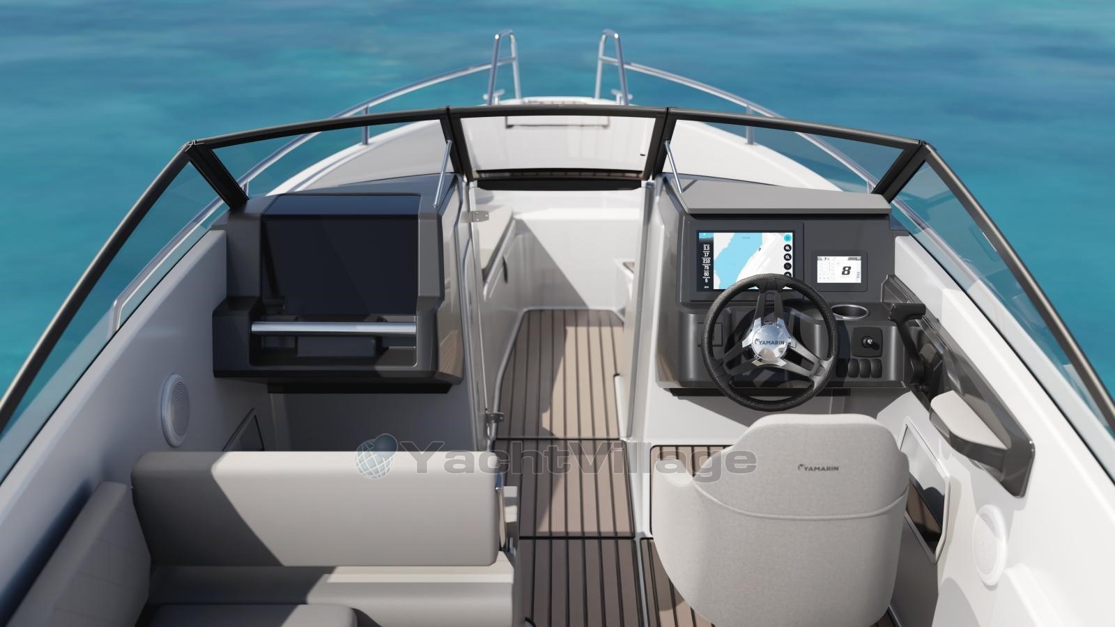 A 10-inch Yamarin Q smart display is conveniently located directly in front of the helmsman. The Yamarin Q is a multifunctional on-board computer and infotainment system that combines the boat's instruments, electronic charts, instruction manuals and the management of many different accessories on a single touchscreen that is easy to read and easy to use. The various engine data of the Yamaha outboards are also seamlessly integrated into the smart display and can thus be easily read. Since the Yamarin Q Smart Display is updated wirelessly via the Internet, the skipper always has the latest software updates at his disposal.