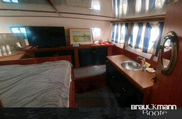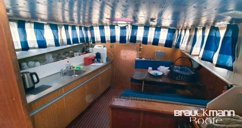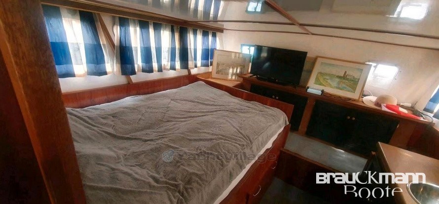 •Luxurious interior: In the interior, all technical equipment has been brought up to date. These include a Webasto heater, a powerful fresh water pump and an efficient bilge pump. The old gas stove was replaced by a modern diesel stove. The small refrigerator has been replaced by a newer, larger 12 V model. In the cabin there is a comfortable double bed and a washbasin.