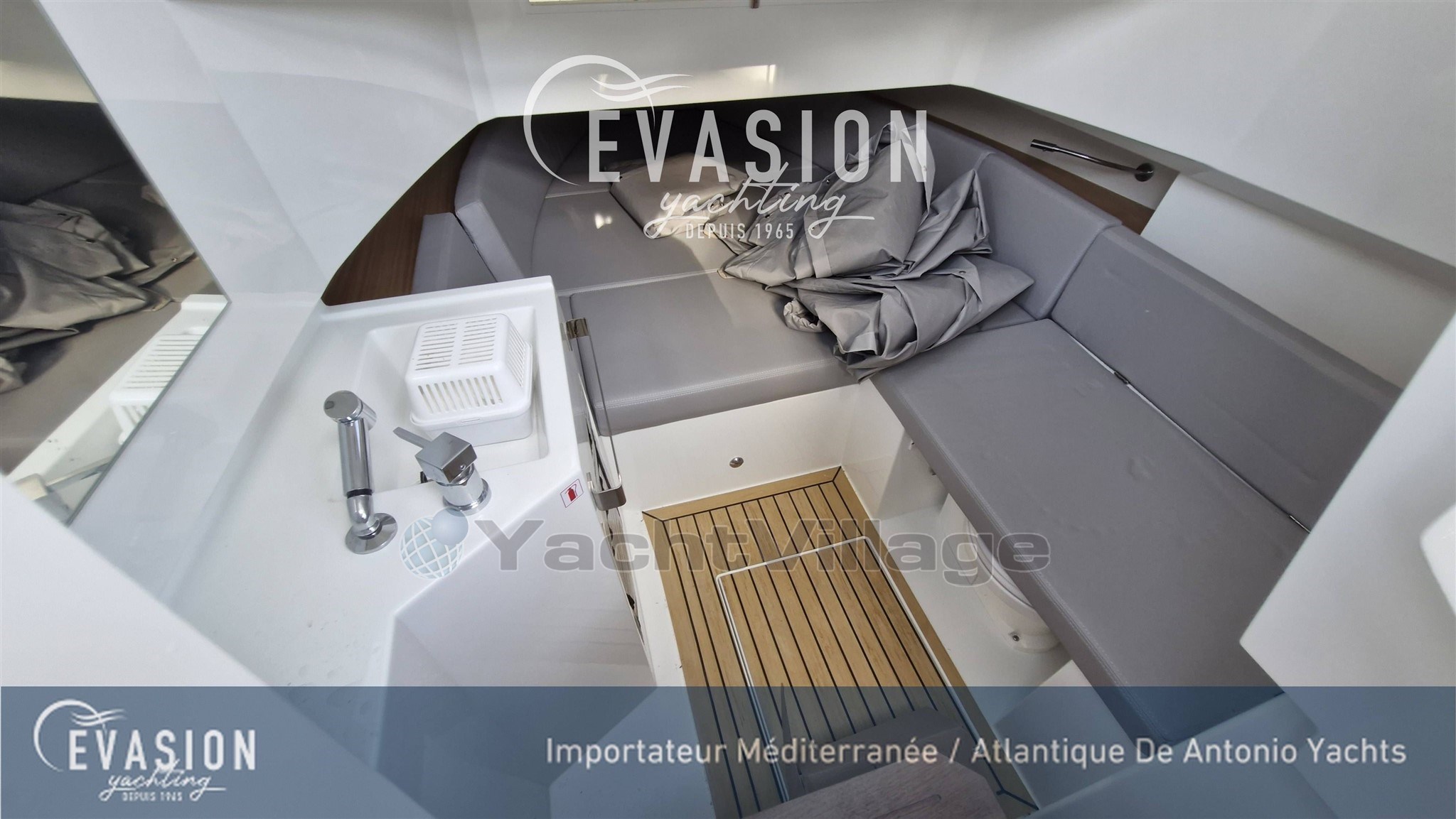 Evasion Yachting presents the new De Antonio D29. What's new? A spacious cabin that can comfortably accommodate two people, you will also benefit from a water point that the designers of the De Antonio Yachts shipyard have managed to integrate for your comfort. It is available in Soft Top or Hard Top versions.