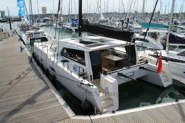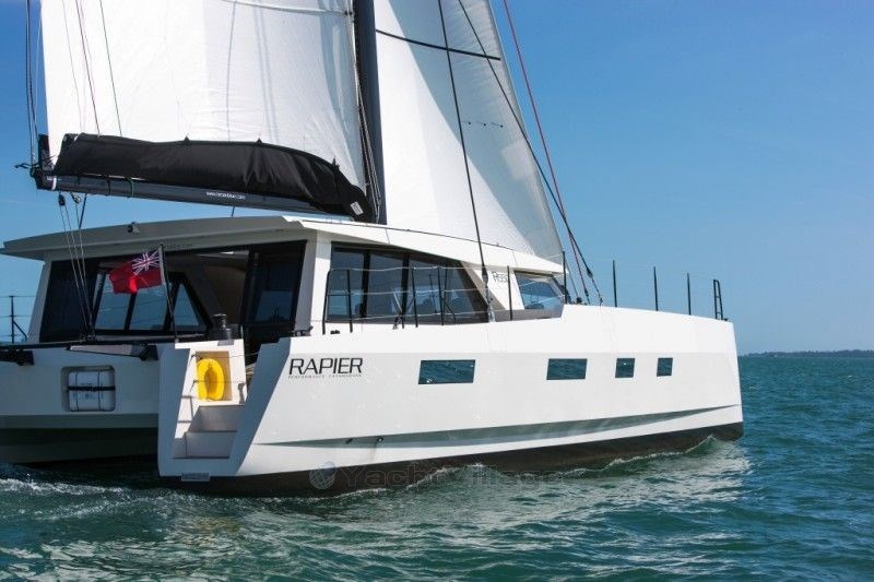 Ocean cruising performance cat by Darren Newton. The Rapier 550 represents the new generation of the most innovative and elegant performance catamarans with a true racing heritage. Intelligent electronics, navigation and radically simple sail handling are standard, as are creative contemporary, luxury interiors. Carbon fibre infused epoxy, making it a fast, light and extremely good-looking boat. With a cruising speed of 15 knots, this boat has the capability of covering 350 miles per day. This Rapier 550 has been enjoyed by her first owner, an experienced Australian family, who are embracing the nomadic sailing life. They crossed the Atlantic from Cape Verde to Barbados with the ARC+ and were the first catamaran home with young children aboard and the eighth catamaran overall. They have invested heavily in the boat with lots of new equipment including 800Ah of Victron-Lithium, new solar arch bringing the total solar array to 2kW, Watt&Sea generator, Raymarine Axiom plotters, Starlink together with new standing rigging etc. €250k of upgrades and updates. After a splendid Caribbean cruise, she is now back in England. All maintenance work done, safety equipment updated, cleaned and polished to be handed over to her second proud owner now. She is still available to order, depending on the factory order book timescale. Likely budget €2.5-€3m and 2 years.