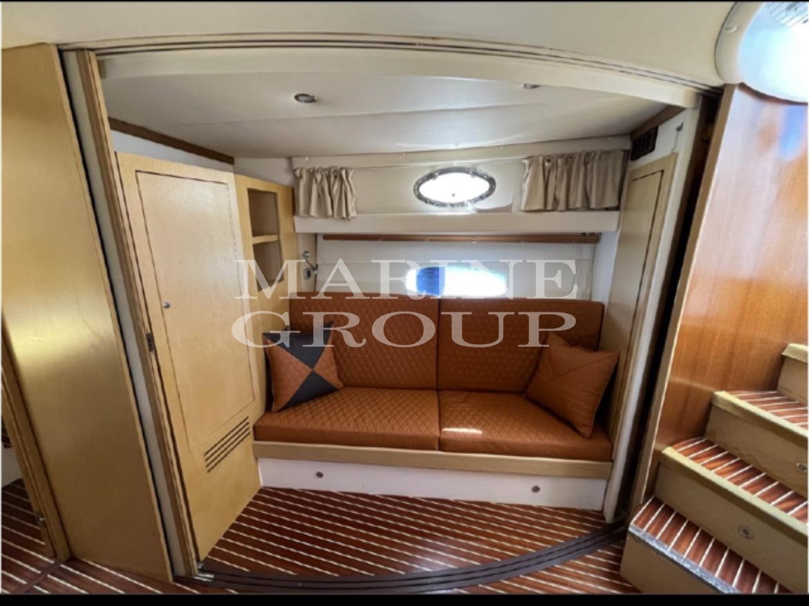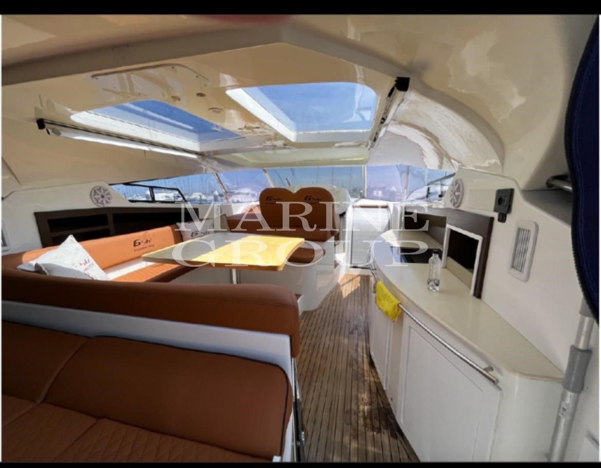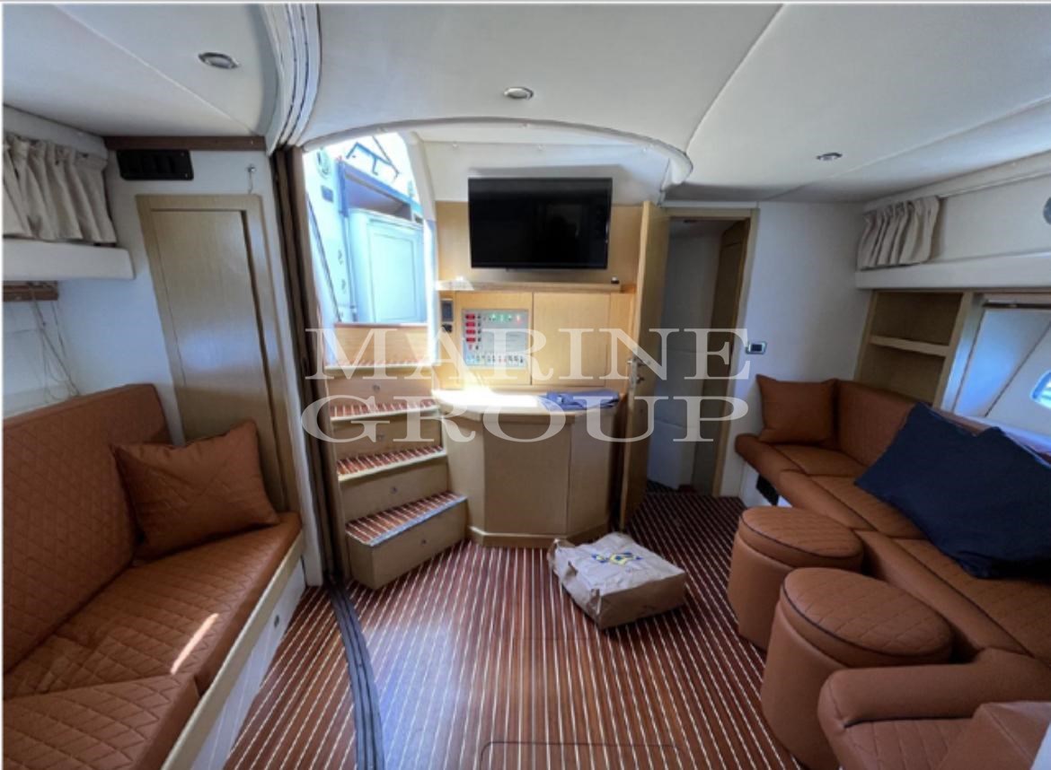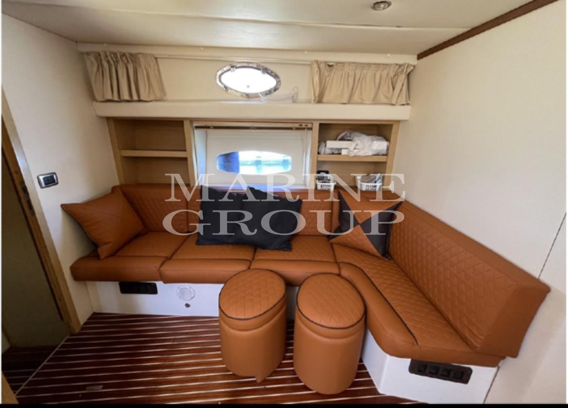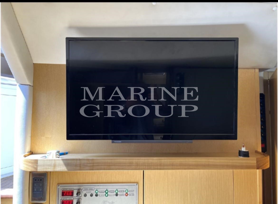 Lautsprecher, Satelliten-TV-Antenne, Klimaanlage, Warmwasserbereiter, Haube, wendbare Klimaanlage, komplette Polster, Heckpolster, Bugpolster, Cockpitpolster, äußerer Kühlschrank, Innenkühlschrank (N°2), TV-System, 12V-Innensteckdosen, 220V-Innensteckdosen, AM/FM-Radio, Stereoanlage, Markise, Fernseher, elektronische Motorsteuerung, Kettenmesser, Außendusche, Bugtriebwerk, verstellbarer Scheinwerfer, hydraulische Klappen, Hardtop, Beleuchtung, Gangway (versteckte Hydraulik), Plattform, Teakholz-Cockpit, 220V-Dockbuchse, elektrische Winde, Schwimmleiter